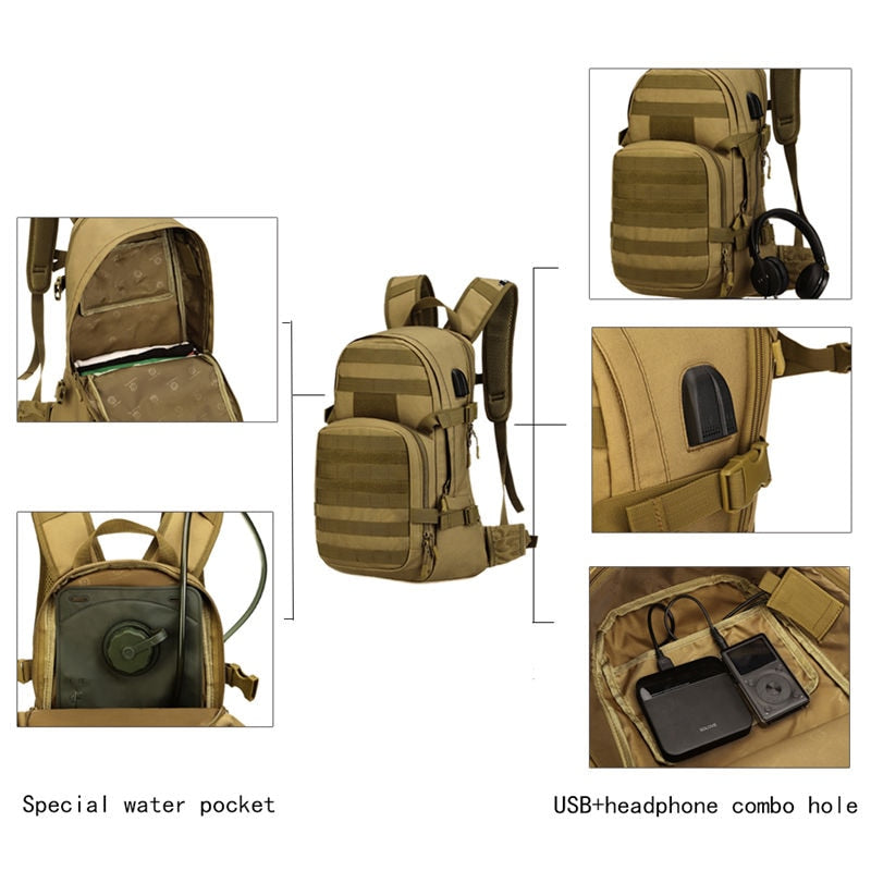 25L Molle Military Tactical Back with USB Charging Special Features: