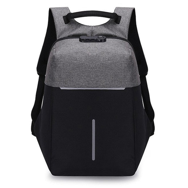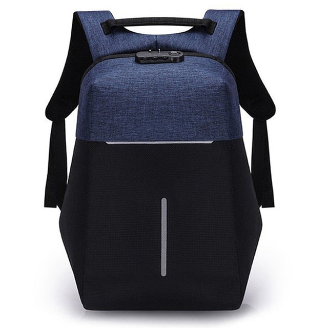 This Small Fashion Anti Theft 15" Laptop Backpack With USB Charging and TSA Lock keeps your valuables safe when you're on the go. Our uniquely designed backpack with lock and charger is made from durable, water-repellent fabric and features anti-theft construction with a cut-proof frame. This backpack with charger and lock is detailed with an integrated USB charging port, interior straps and pocket to secure all sorts of small items, and protective pockets for your laptop and tablet. Available in two tone black, blue, purple and grey, this backpack includes a top grab handle and adjustable backpack strap that makes it comfortable to carry for all day use. A built in locking system locks all your valuables inside. This Small Fashion Anti Theft 15" Laptop Backpack With USB Charging and TSA Lock is waterproof, comfortable and environmentally made.