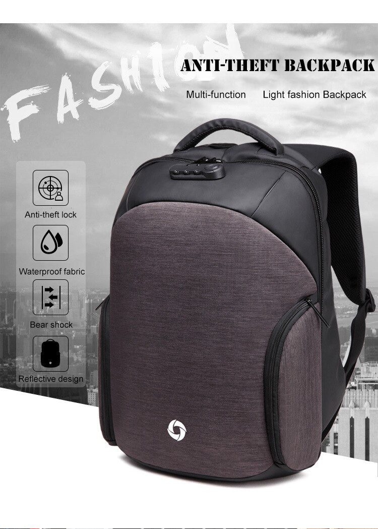 Men's Medium Anti-Theft 15" Laptop Backpack with USB Charging and TSA LockDescription: