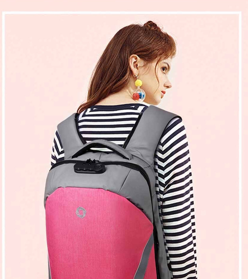 This Women's Oxford Anti-Theft 15" Laptop Backpack with TSA Lock keeps your valuables safe when you're on the go. Our backpack with lock and charger is made from durable, water-repellent fabric and features anti-theft construction with a cut-proof frame. This Women's Oxford Anti-Theft 15" Laptop Backpack with TSA Lock secures all sorts of small items, and protective pockets for your laptop and tablet. Available in gorgeous colors including the new Slate and Teal as well as Laser Pink. A built in locking system locks all your valuables inside. This Women's Oxford Anti-Theft 15" Laptop Backpack with TSA Lock is waterproof, comfortable and environmentally made. Ideal for a 15.6 inch laptop.