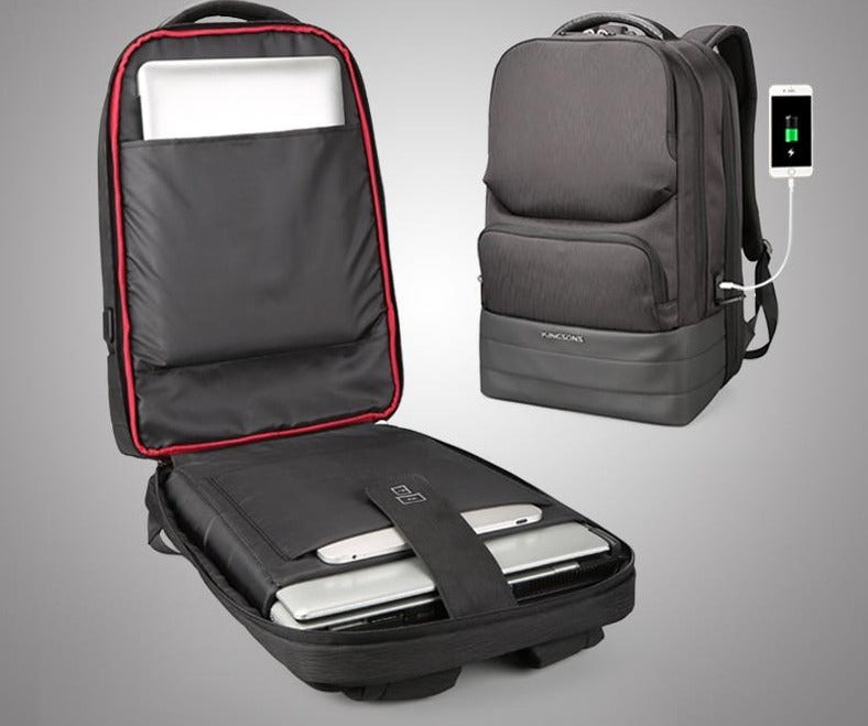 Our Men's Large Capacity 15" Laptop Backpack with USB Charging is the perfect accessory. Ideal for travel. This Men's Large Capacity 15" Laptop Backpack with USB Charging backpack is made from durable, water-repellent fabric and features anti-theft construction with a cut-proof frame. Anti-theft zipper positioning keeps all your valuables safe. This backpack with usb charger is detailed with an integrated USB charging port, interior straps and pocket to secure all sorts of small items, and protective pockets for your laptop and tablet.