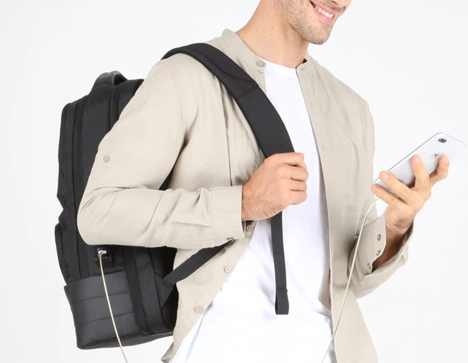 This Men's Large Capacity 15" Laptop Backpack with USB Charging is waterproof, comfortable and environmentally made. Additional features include a media port for easy access to your headphones.