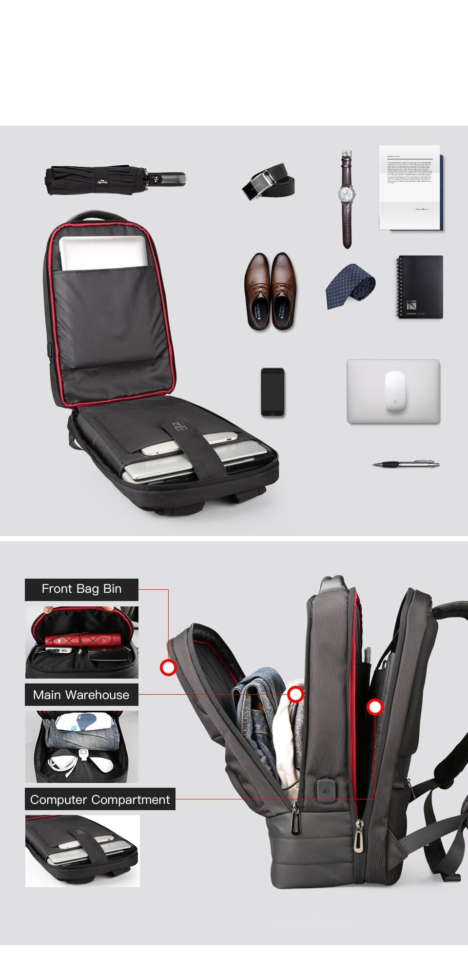 Men's Large Capacity 15" Laptop Backpack with USB Charging Special Features: