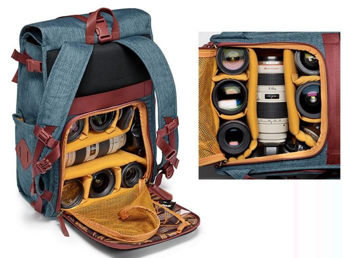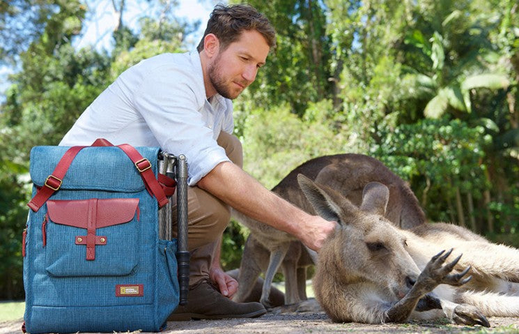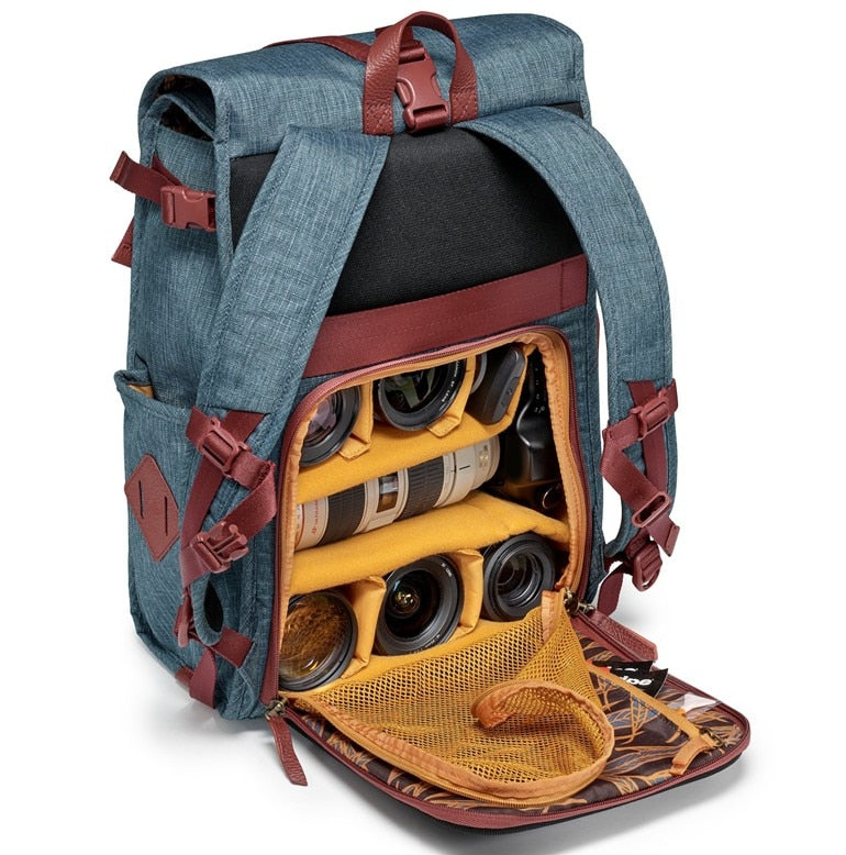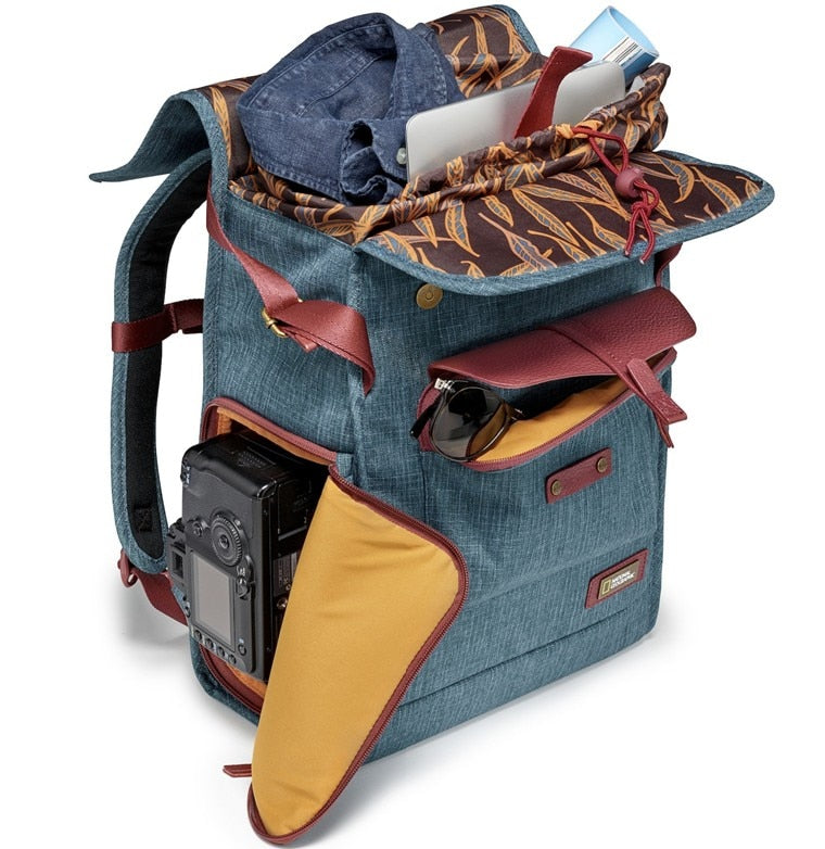 This Large Professional Explorer Camera Backpack for DSLR/CSC keeps your photography gear safe. The combination of materials used is inspired by the red and blue of Australia’s outback and seas. It is designed with careful attention to detail and premium materials: earthy-red, genuine Italian leather and water-repellent fabrics evoking Australian scenery and colours. On the inside, the bags feature a colourful eucalyptus-leaf print lining reminiscent of Australia’s typical natural landscapes. A fresh look and essential design helps photographers keep a casually low profile while gear is kept safe by the renowned Protection System.