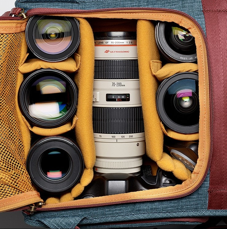 -Fits DSLR with 70-200/2.8 attached and up to 5 additional lenses