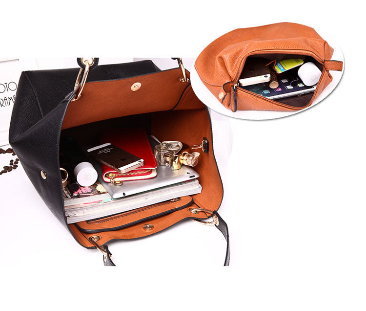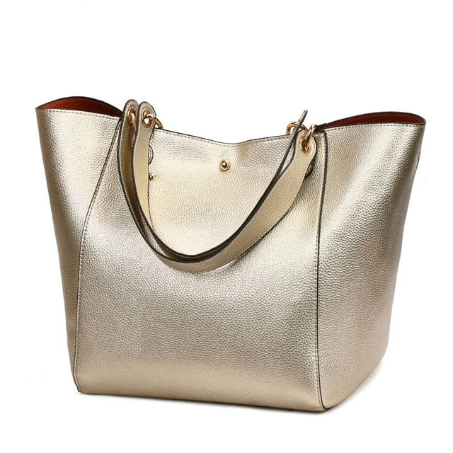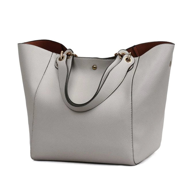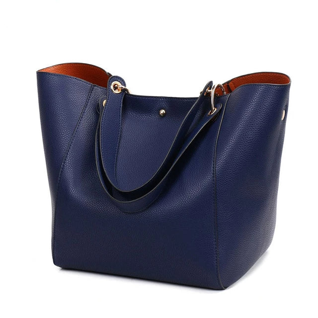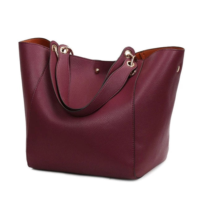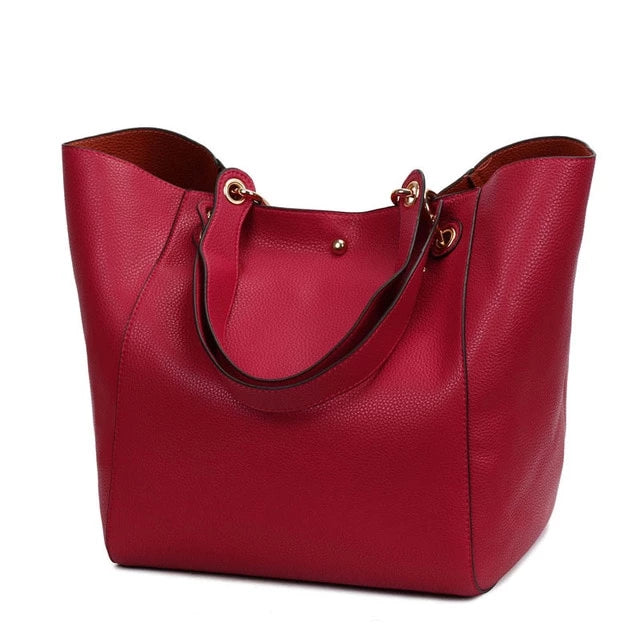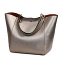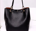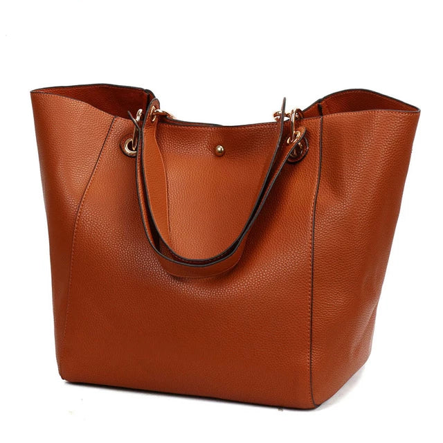 Women's Classic Large Vegan Leather Bucket Tote Handbag
