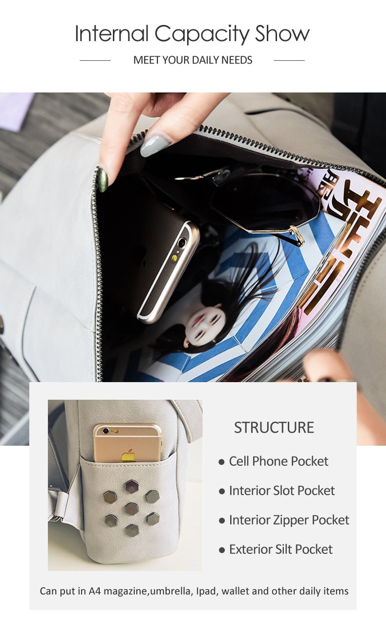 Women's Simple Style Vegan Leather Backpack Special Features:
