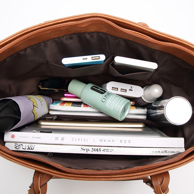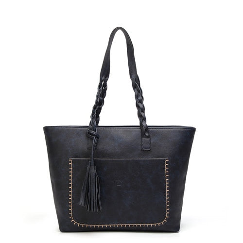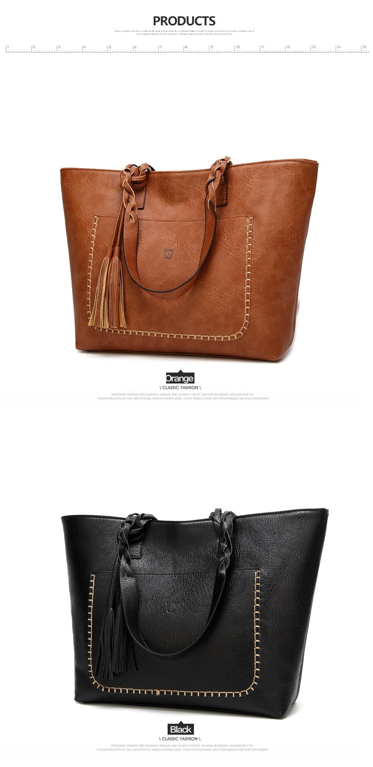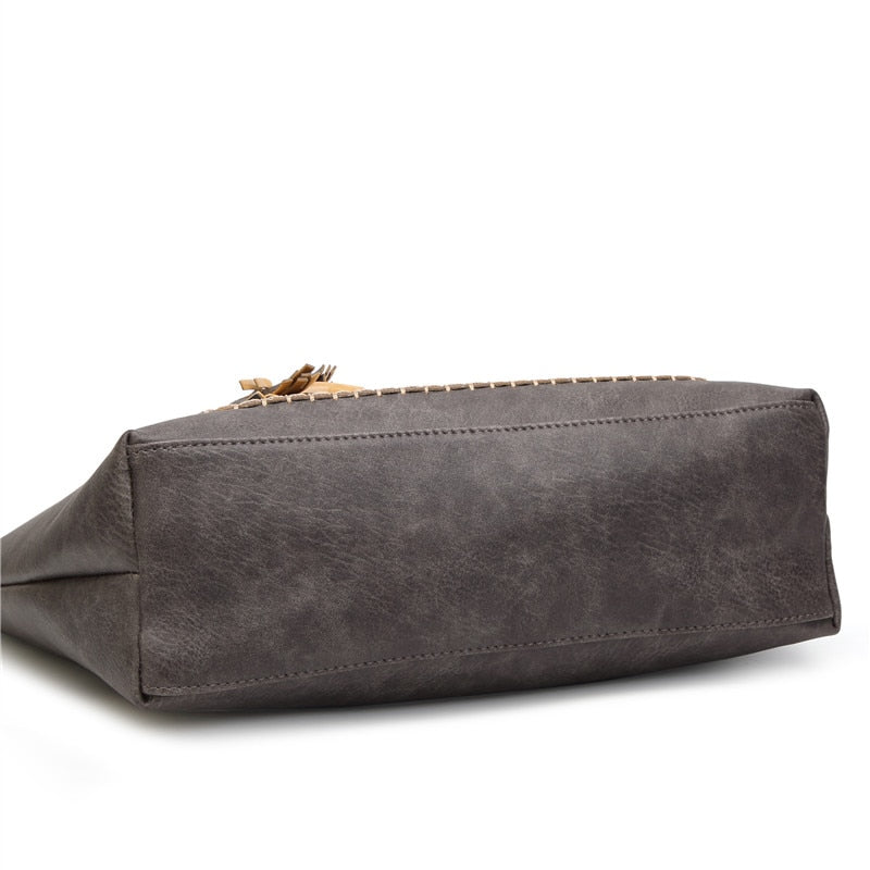 Women's Vintage Vegan Leather Tassel Tote