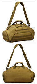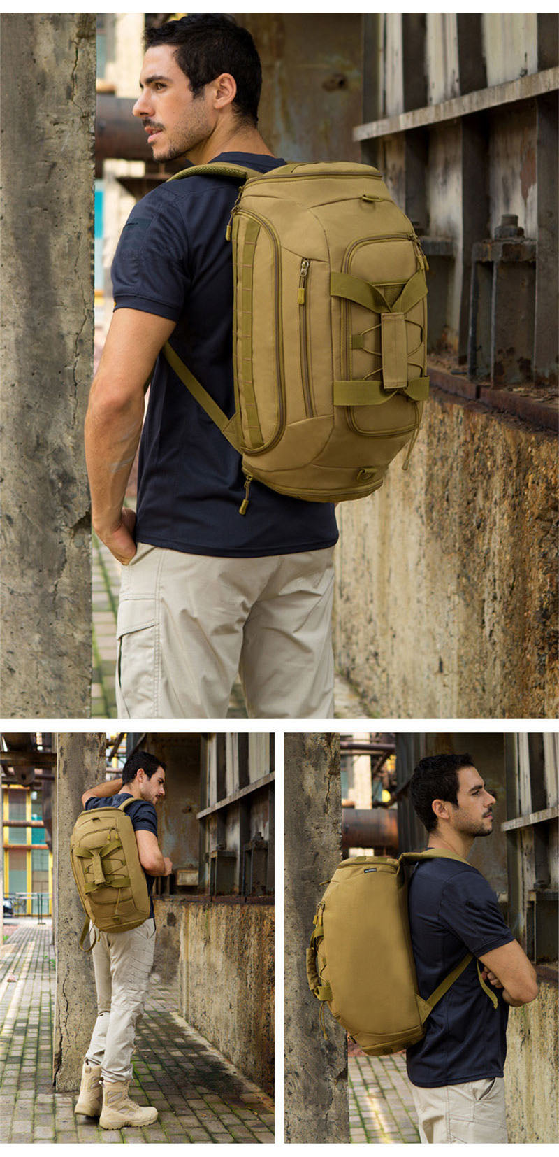 Going out of town for the weekend doesn't mean that you should settle for luggage that's going to fall apart on you. With our 35L Military Tactical Duffel Backpack , your luggage will be able to survive the roughest roof-top hail, the rowdiest airline luggage movers, and the hottest, windiest motorcycle rides. Big enough to hold all your essentials for a quick overnight multi-pitch or weekend away at the fam's house, the 35L Military Tactical Duffel Backpack compresses and organizes so that you can optimize your space and bring everything you need. This bag even comes with weighted, padded haul handles on the sides so strapping it to a yak, a car, or a rigging system isn't a problem. Plus, the four compression straps will make all your gear not seem like so much, so you can bring what your heart desires.