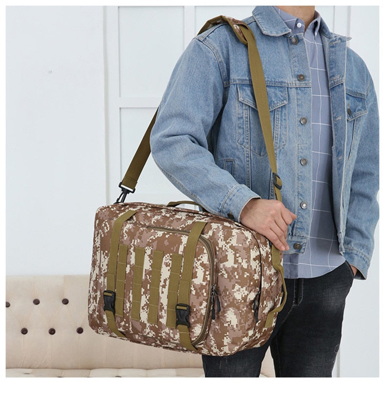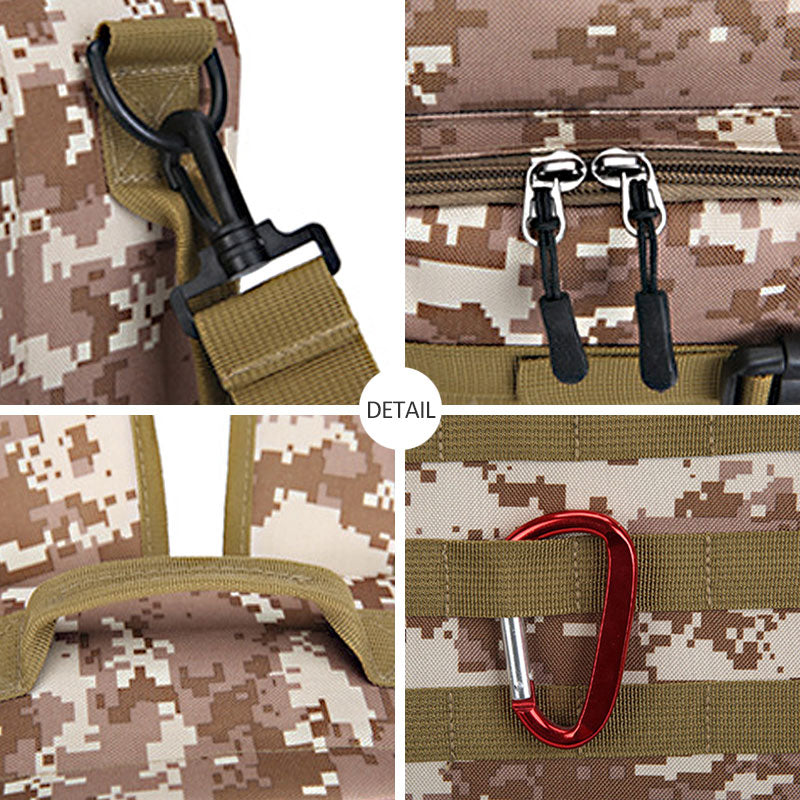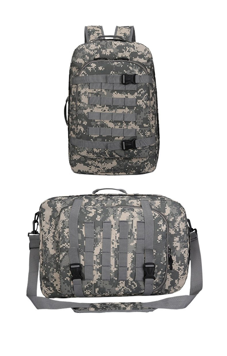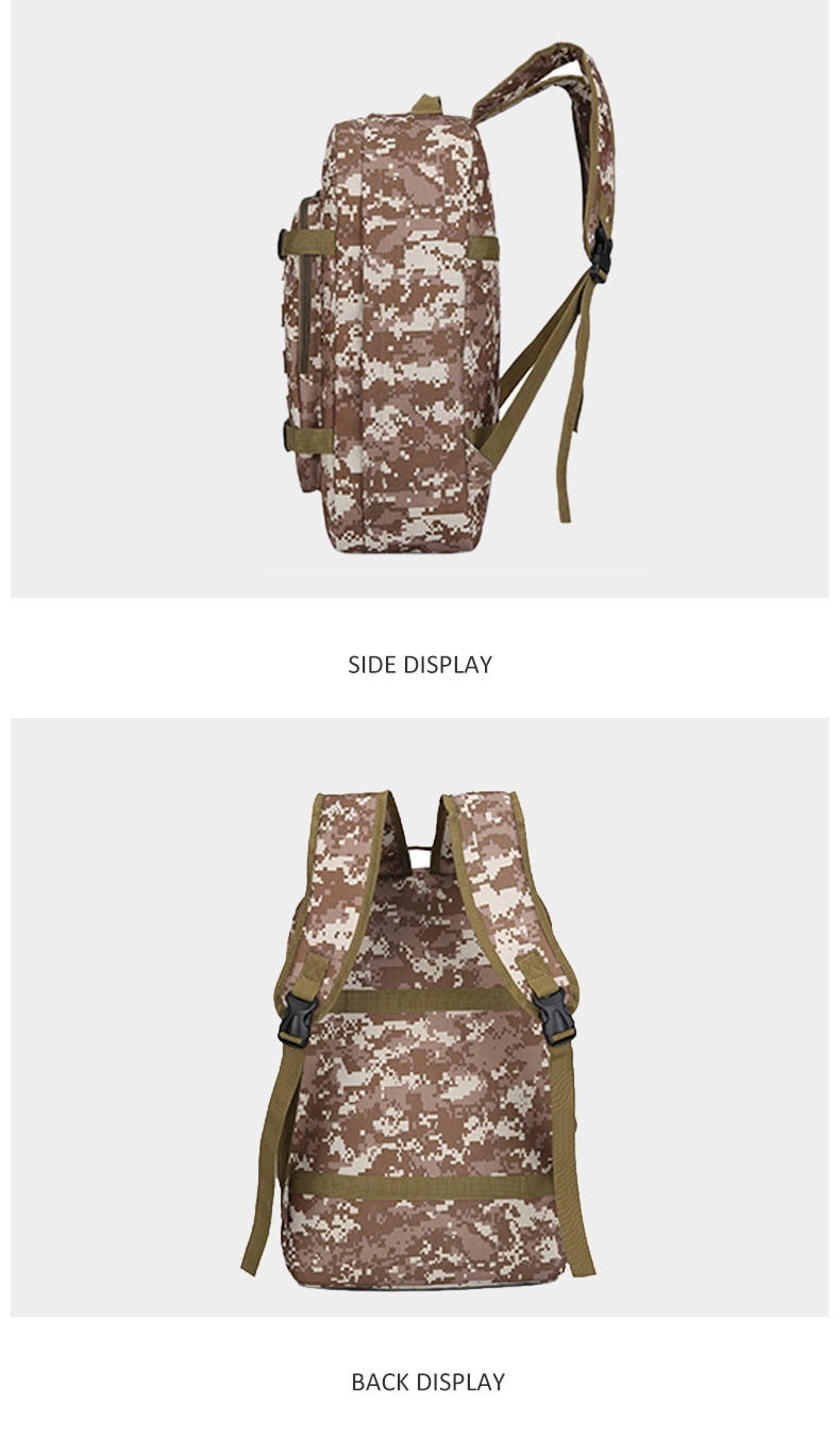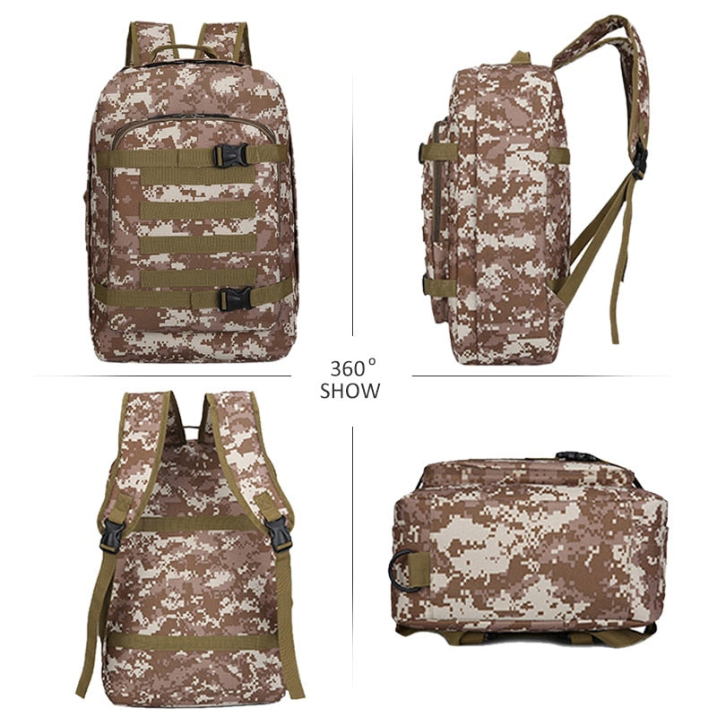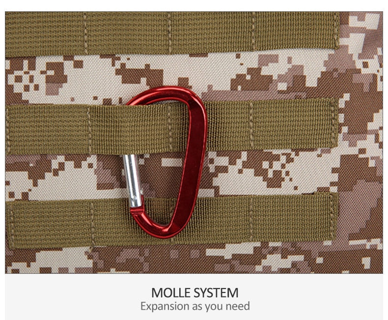 Our 20L Military MOLLE Tactical Army Multifunctional School Backpack is the first line of defense for your needs. This backpack has 7 zippered pockets to store and organize your gear. The webbing keeps your gear close as you build out your bag as needed and minimizes weight. Use the 4 compression straps to keep your bag packed tight. The padded shoulder straps and sternum strap gives you the support you need to go long distances. Our Military MOLLE Tactical Army Multifunctional School Backpack is one of those companions you want sticking close to you. Use the extra strap to convert this bag into a handy shoulder bag.