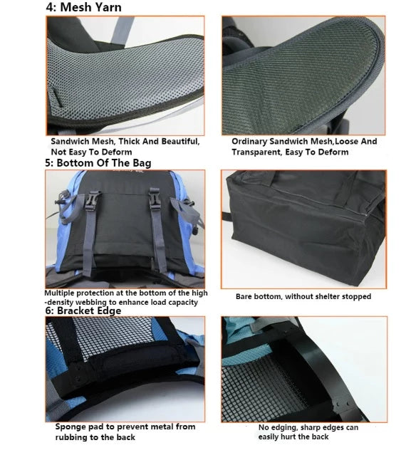60L Professional Camping Climbing Trekking Rucksack Special Features: