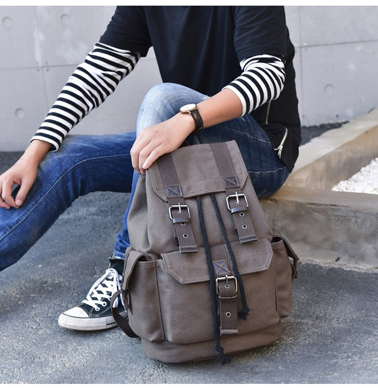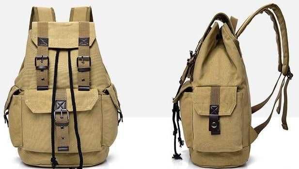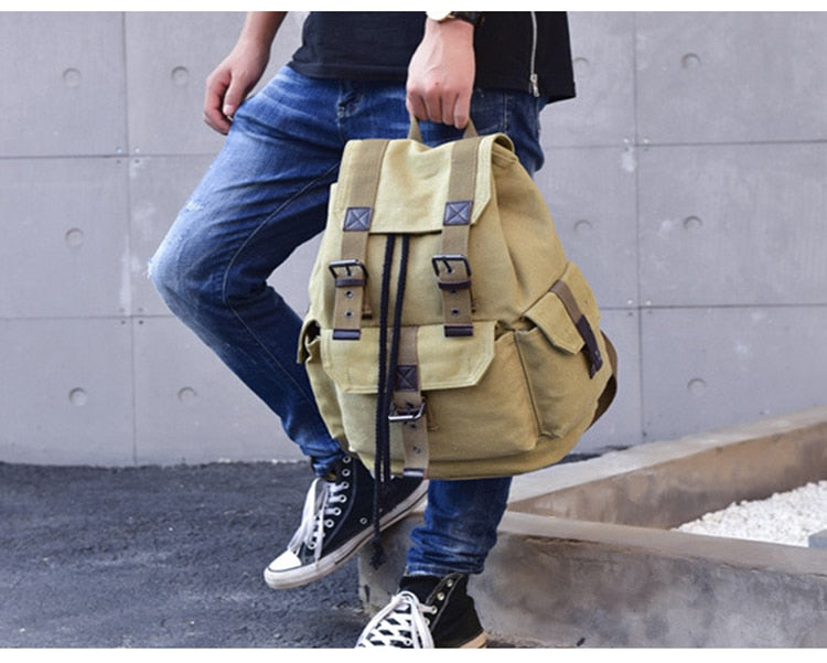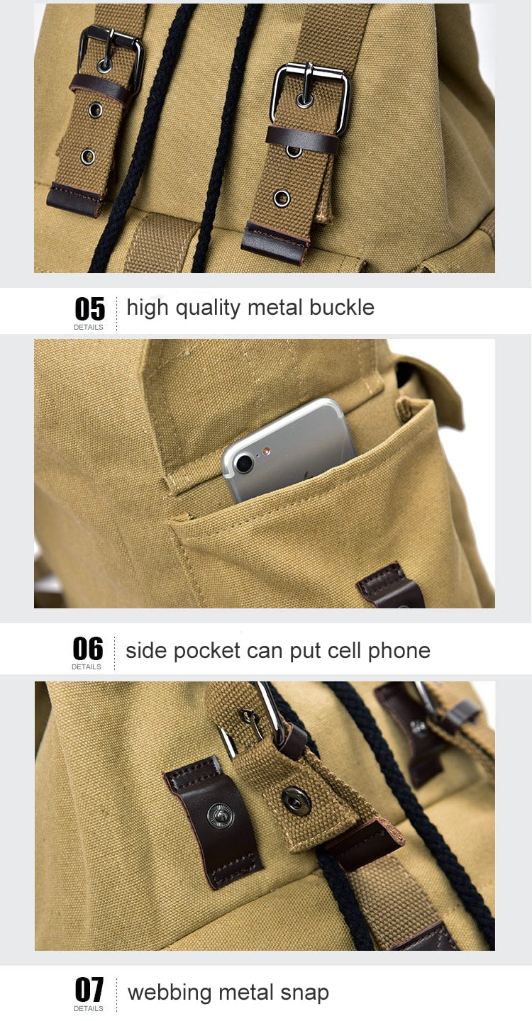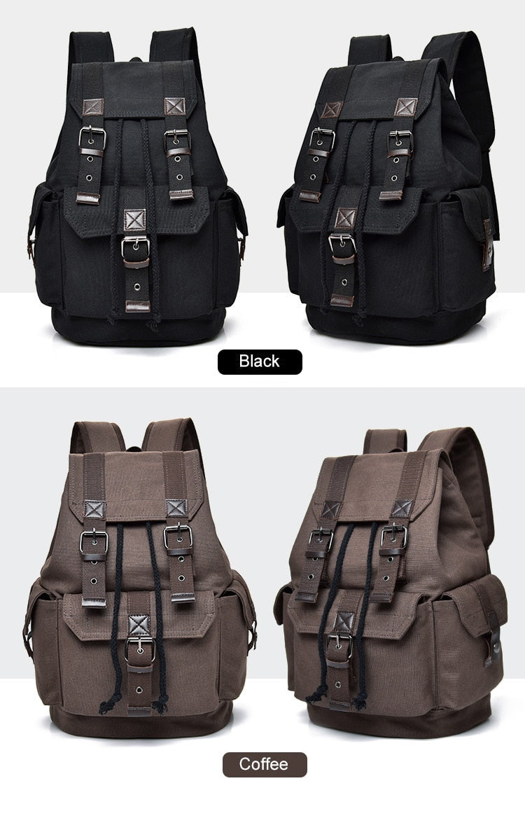 This Men's Canvas Vintage School Backpack in vinatge style uses cotton canvas and genuine cow leather with adjustable shoulder straps for carrying comfortably, skin-friendly and soft. Best for men school, work, traveling, hiking, mountaineering and camping.