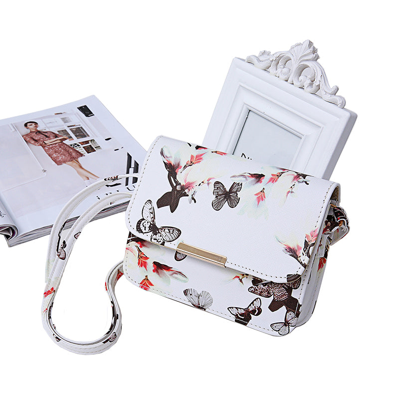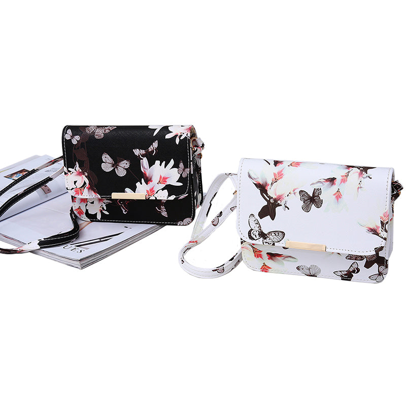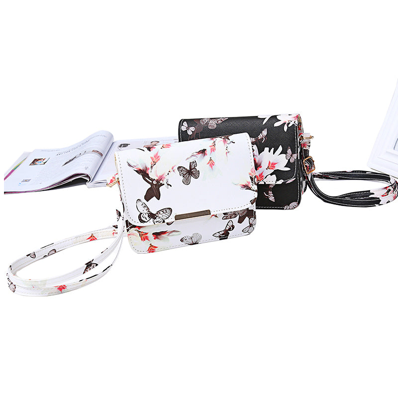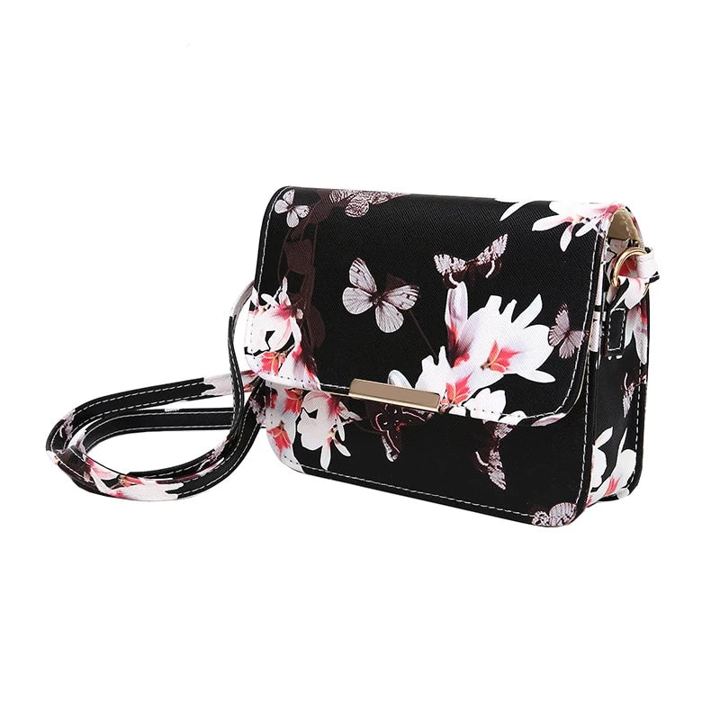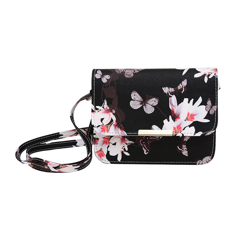 Women's 'Butterflies and Flowers' Small Shoulder Crossbody Bag Description: