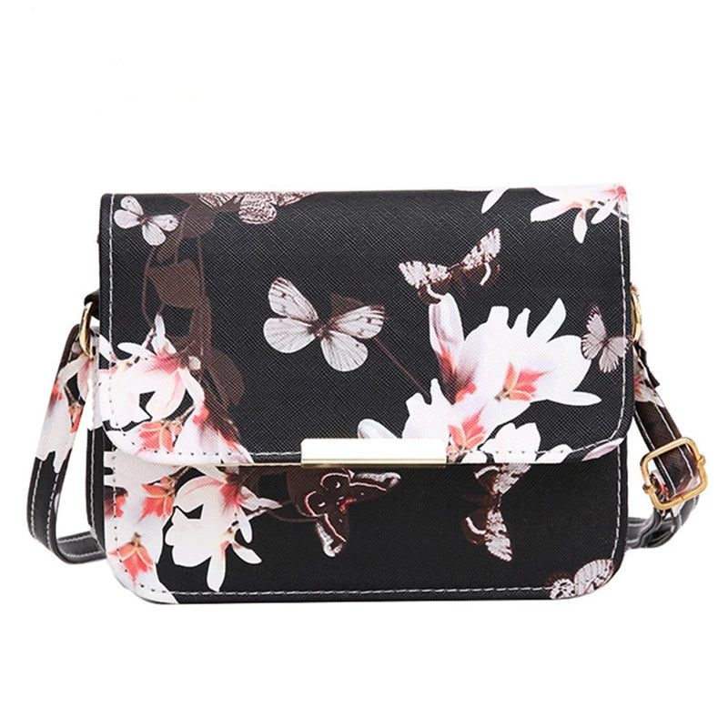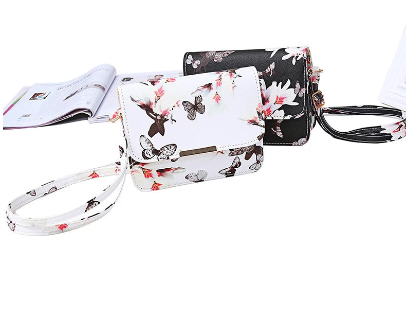 Women's 'Butterflies and Flowers' Small Shoulder Crossbody Bag