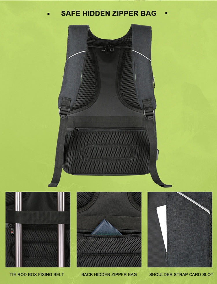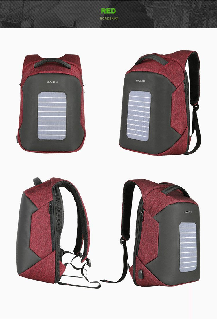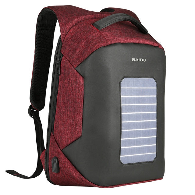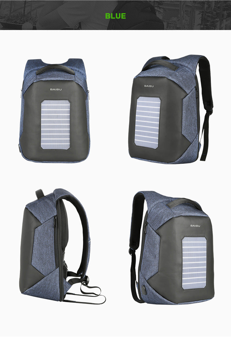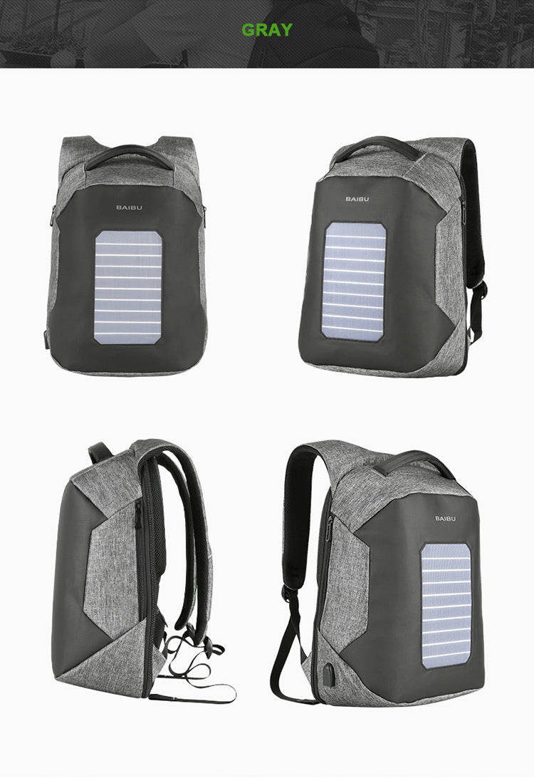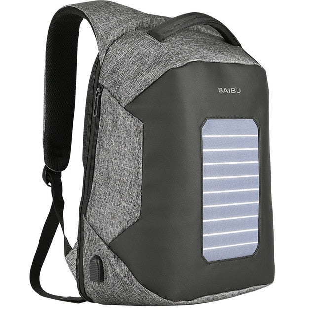 Men's Anti-Theft Solar Powered 10W Laptop Backpack with USB Charging Description: