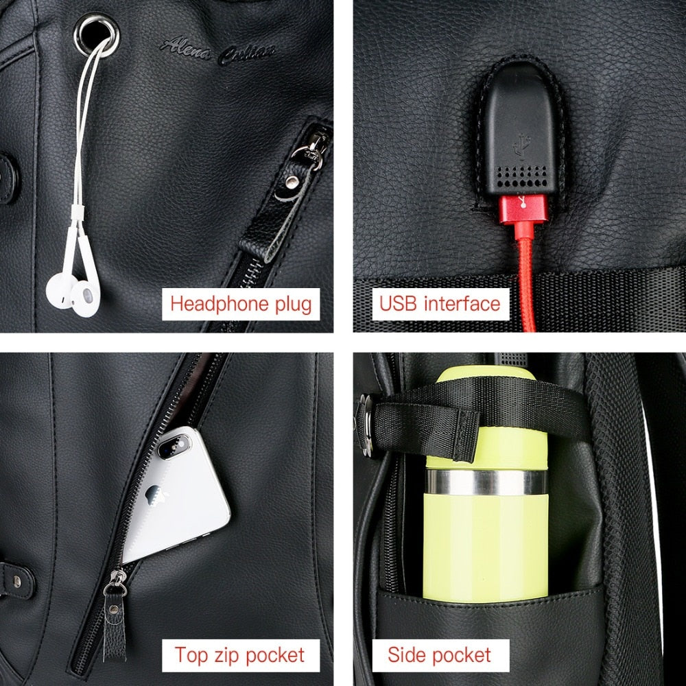 Men's Leather Casual 13" Laptop Backpack with USB Charging Special Features: