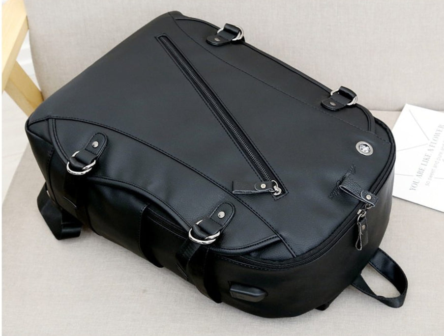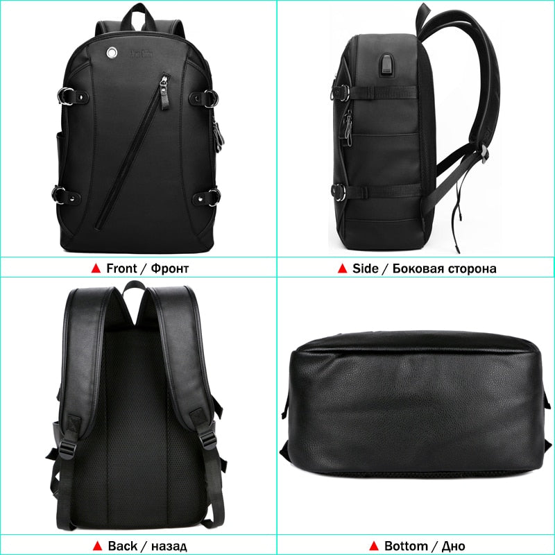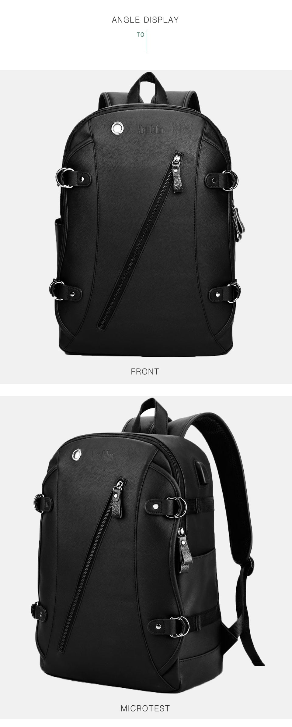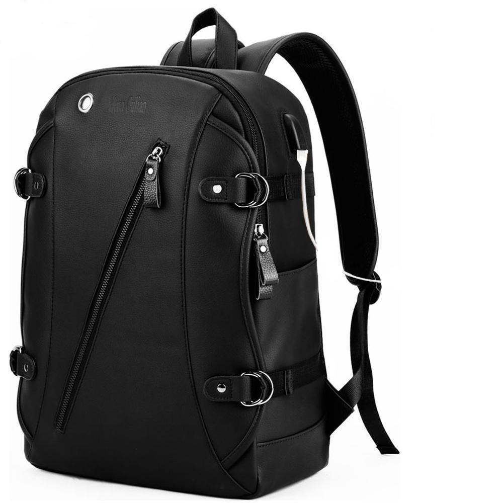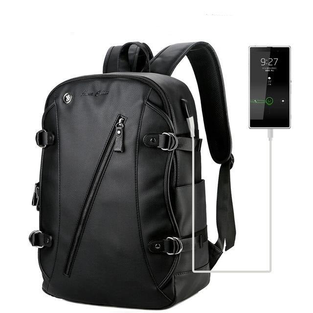 Men's Leather Casual 13" Laptop Backpack with USB Charging Description: