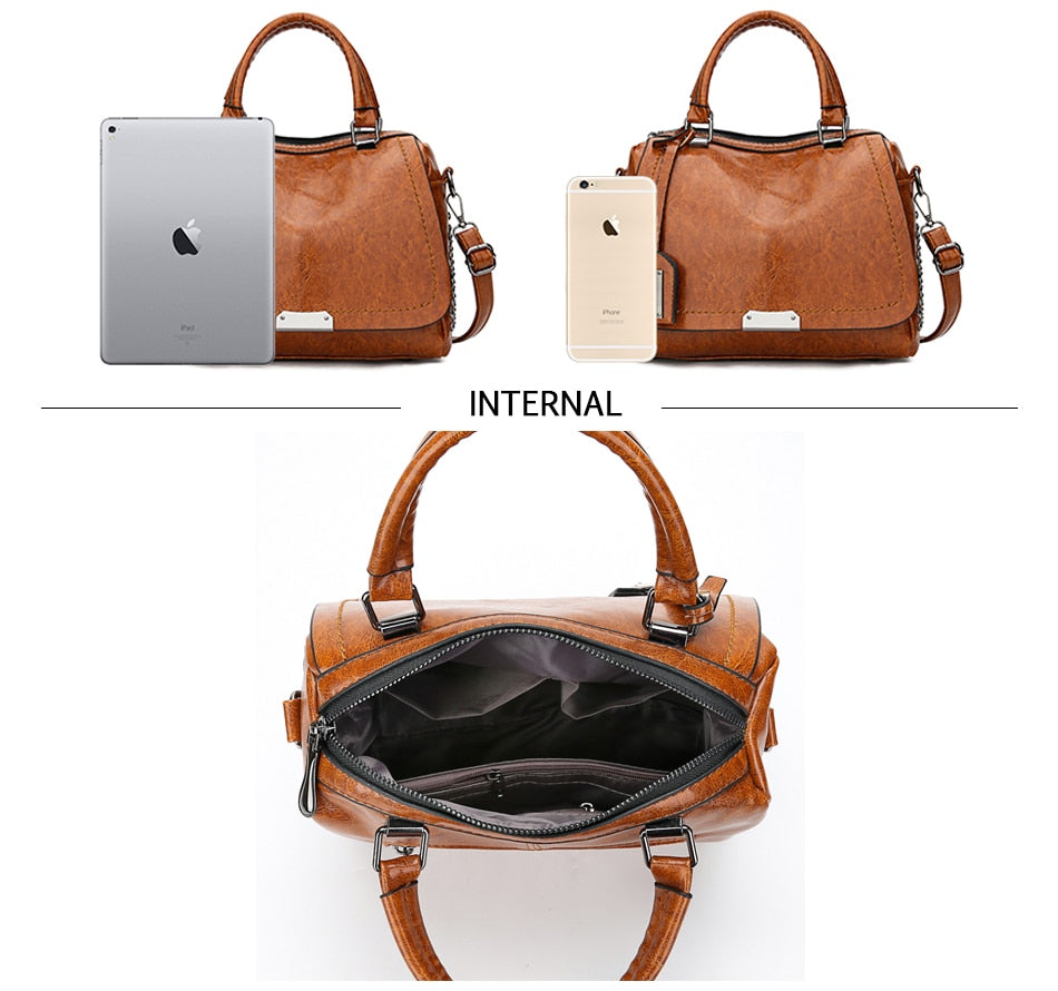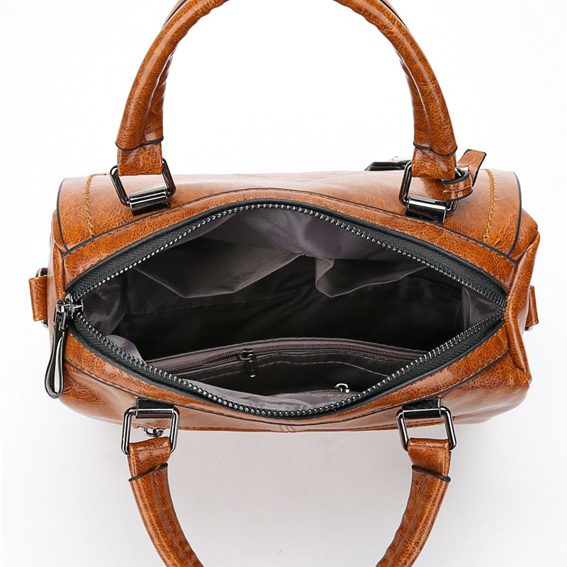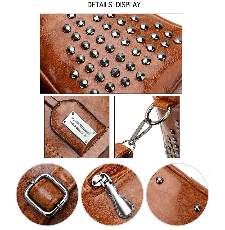 Women's Vintage Vegan Leather Rivet Handbag with Shoulder Strap