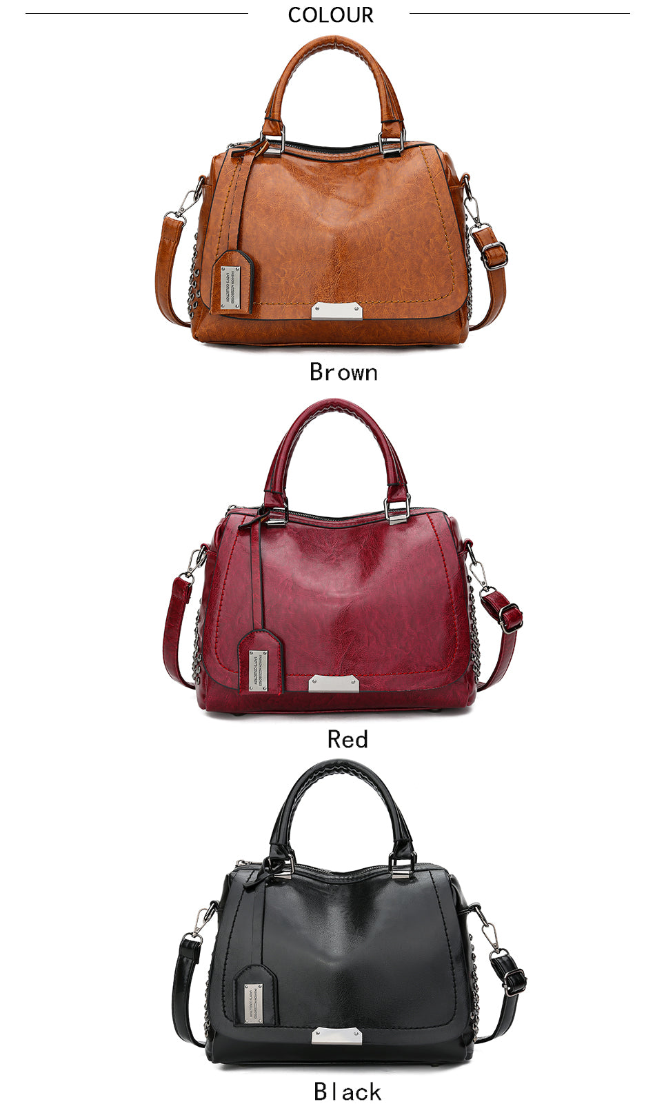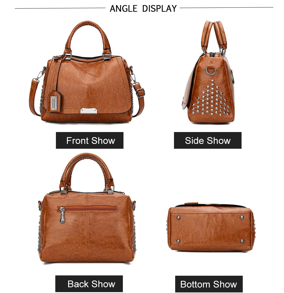 Women's Vintage Vegan Leather Rivet Handbag Description: