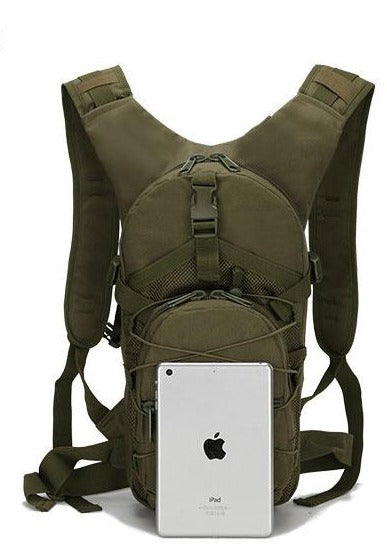 Carry your everyday or adventure essentials in hands-free comfort and style in this 15L Military Hydration Day Pack. This compact, lightweight, and durable nylon backpack features contrast trim, bright logo accents, and an external compression for superior load management; and it's available in several colors. It boasts a spacious, zippered main compartment with plenty of room for all your hiking and camping needs; it will even fit your notebook computer in its own sleeve and files; or your hiking or day-tripping gear. A front zippered compartment offers additional storage space, and stretchy mesh side pockets provide quick access to your water bottle and cell phone or snacks. Front bungee cords allow you to attach extra equipment to it, and this 15L Military Hydration Day Pack comes with an AirScape back panel and a spacer-mesh fixed harness for carrying comfort. Hydration Bladder Sold Separately.