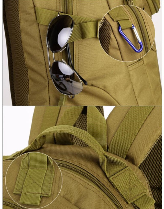 Our 25L Military Tactical Backpack is the first line of defense for your tactical needs. This backpack has 7 zippered pockets to store and organize your gear. The webbing keeps your gear close as you build out your bag as needed and minimizes weight. Use the 4 compression straps to keep your bag packed tight. The padded shoulder straps and sternum strap gives you the support you need to go long distances. Our 25L Military Tactical Backpack is one of those companions you want sticking close to you.