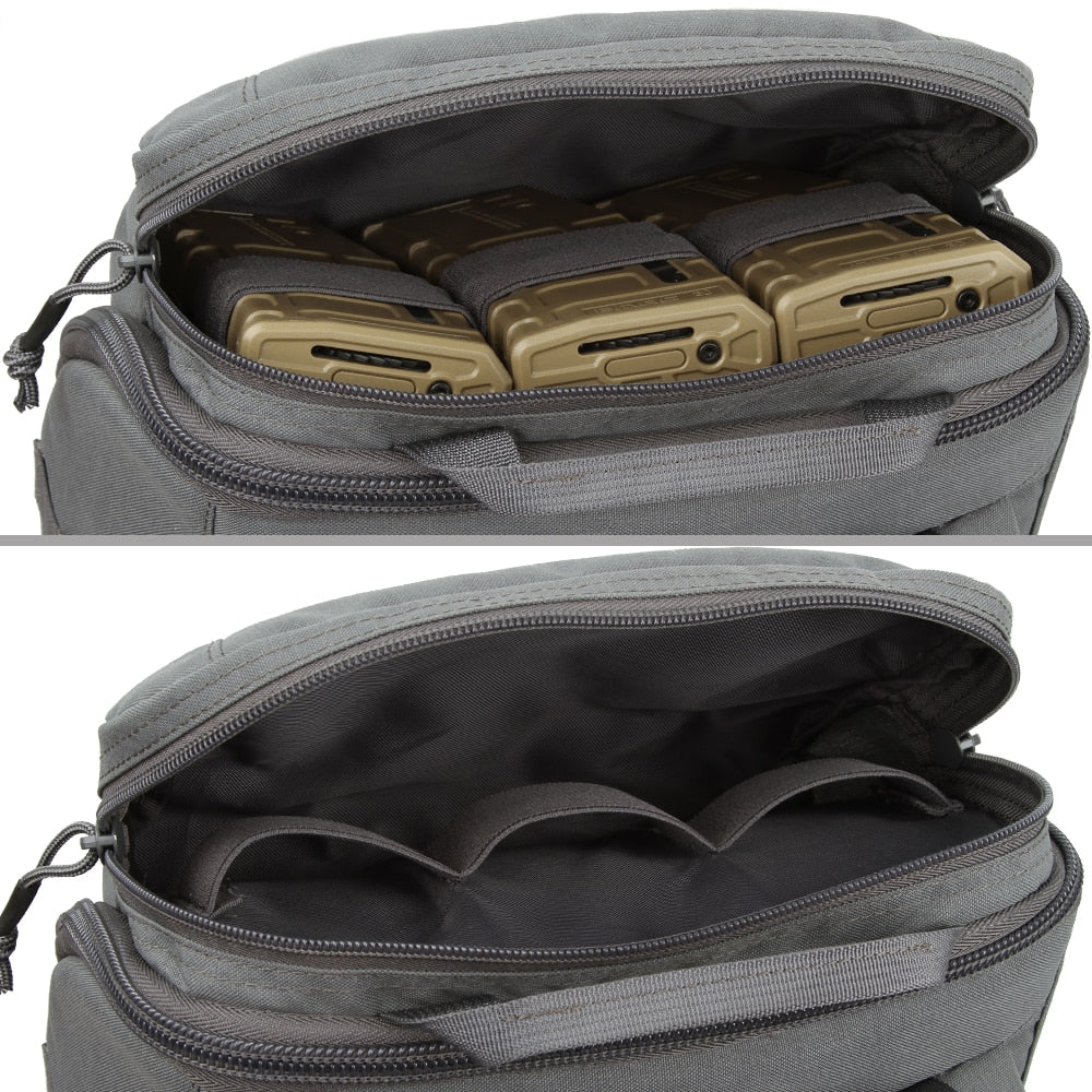 This 30L Military Molle Tactical Multi Compartment Medic Backpack was designed with input and expertise from one of the finest medical products providers in the US and supports a large variety of tactical profiles for the different means and aspects of tactical infiltration and exfiltration from the modern battlefield. A large zippered pocket allows access from within or outside the pack, bungee attachment points will secure odd sized items, and three “tear out” pockets can be tossed to assist personnel facilitating a multi-casualty scenario. An easily accessed grab handle will allow the pack to be hung in vehicles or airframes.