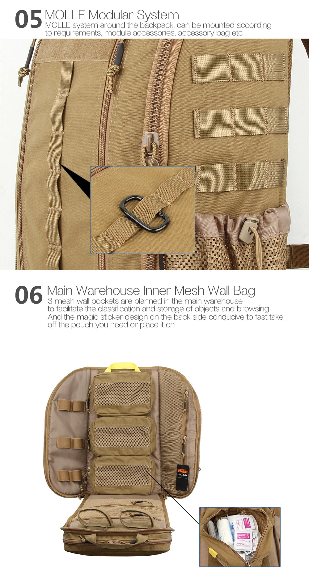 30L Military Molle Tactical Multi Compartment Medic Backpack Special Features: