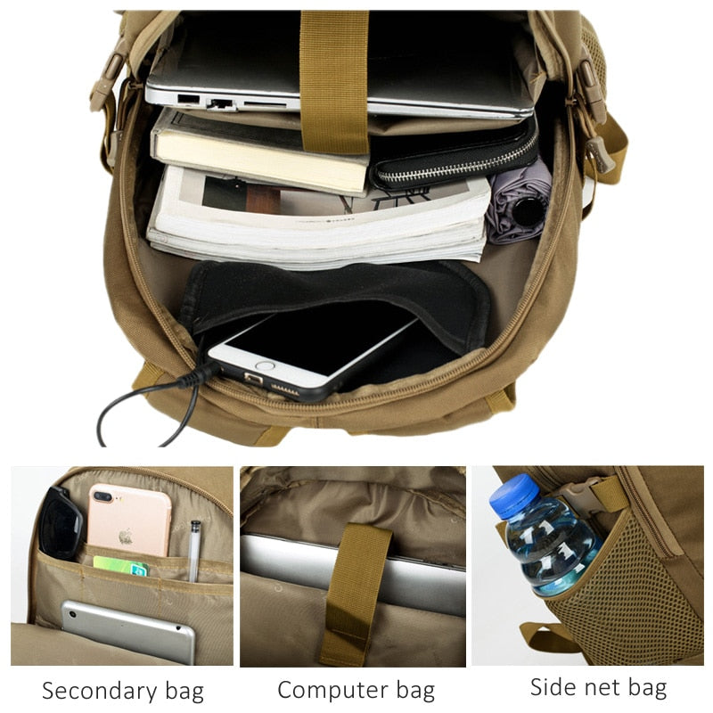 20L MILITARY MOLLE TACTICAL USB BACKPACK SPECIAL FEATURES: