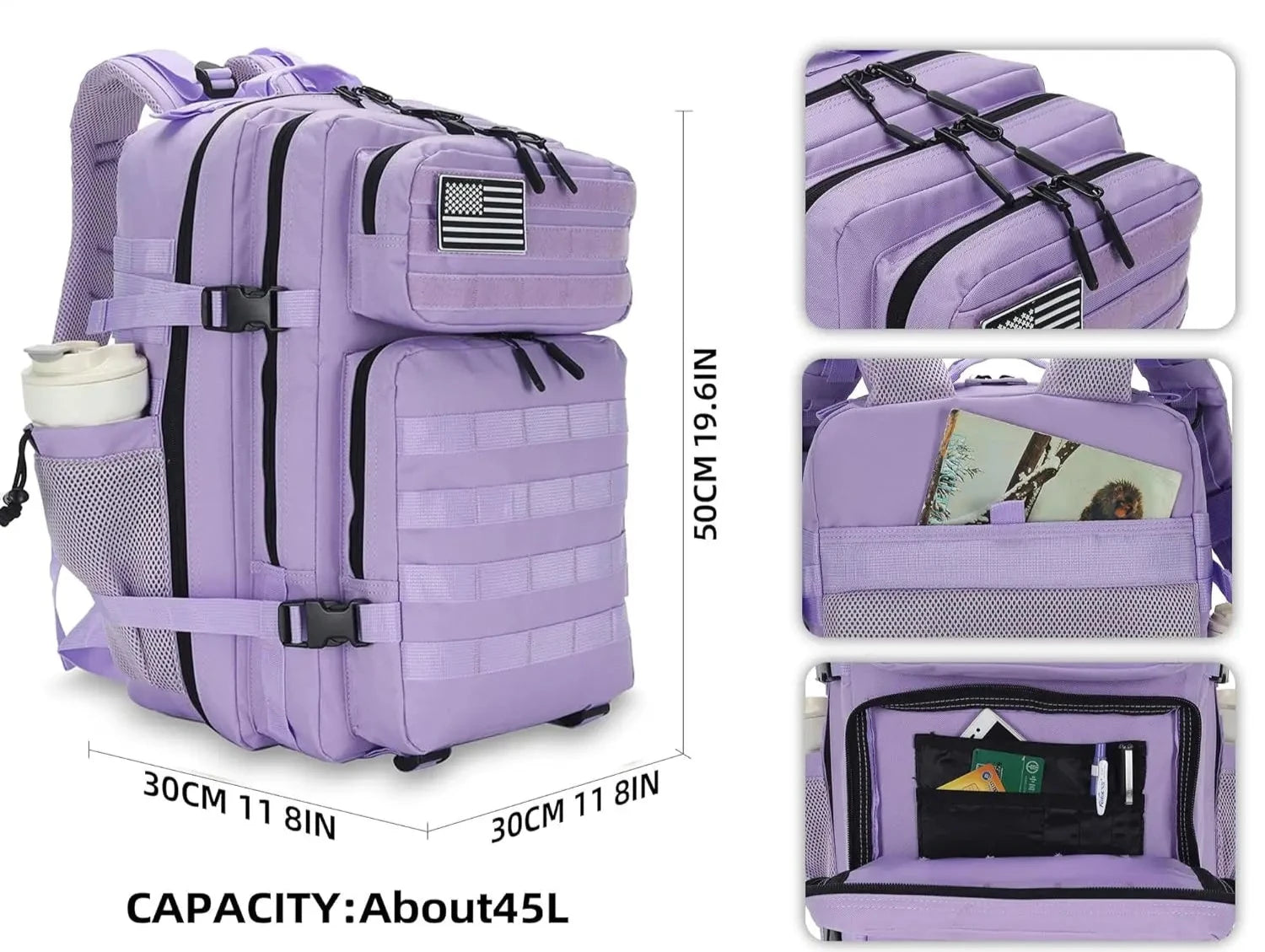 45L 3P Military Molle "Violet" Tactical Backpack Description: