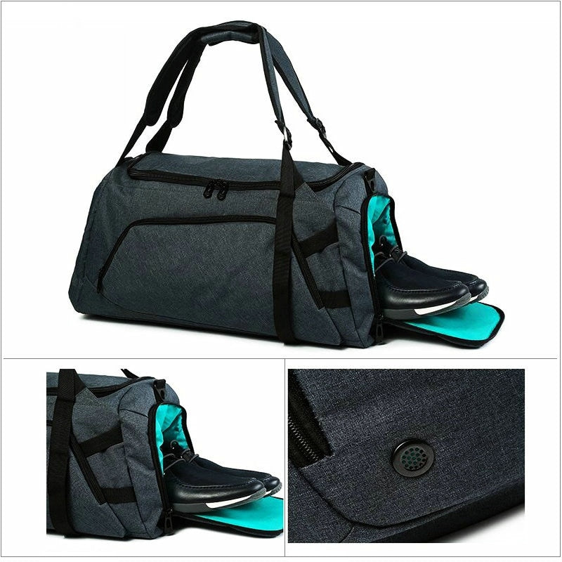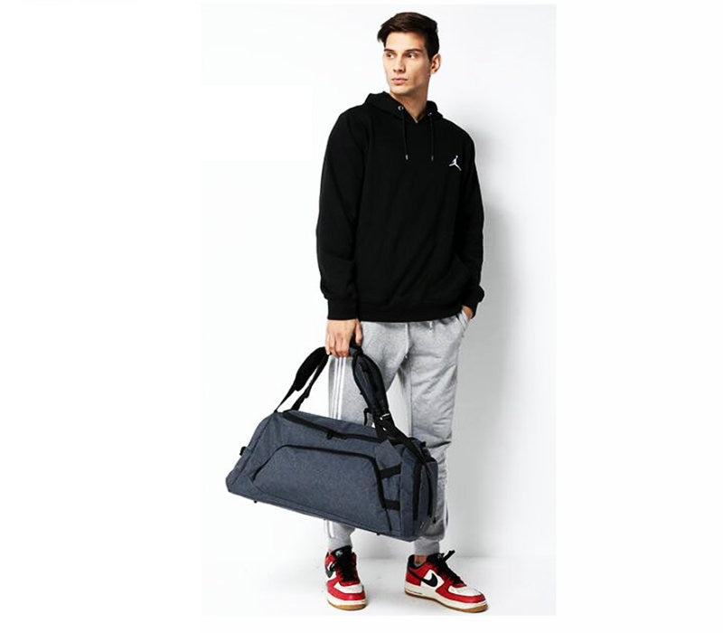 This lightweight, roomy, 45L Men's Classic Duffel Bag is great for daily sports or travel. It features separate compartments for a laptop, shoes and clothes. With hideaway padded backpack straps, a removable-adjustable shoulder strap and four carrying handles, this backpack can transform into a modern and durable duffel.