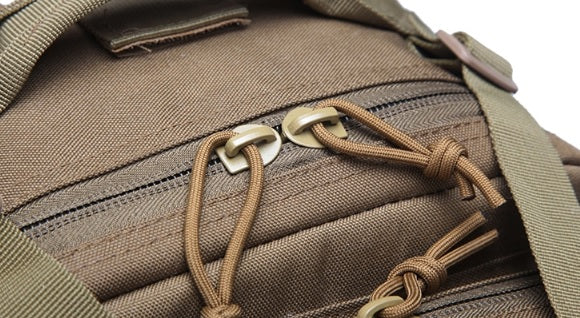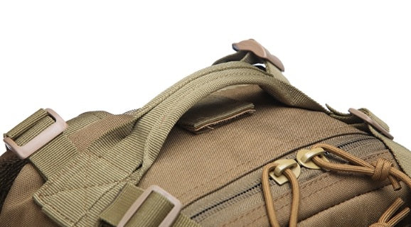 Our 50L Large Military MOLLE Tactical Army Backpack features an enhanced design to aid in comfort, durability and all day mobility. Made of a sturdy 600 denier, the large main compartment contains 3 mesh pockets with a zipper closure as well as 1 pocket with a drawstring closing.