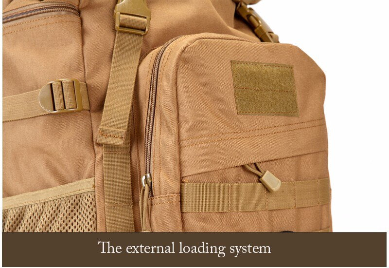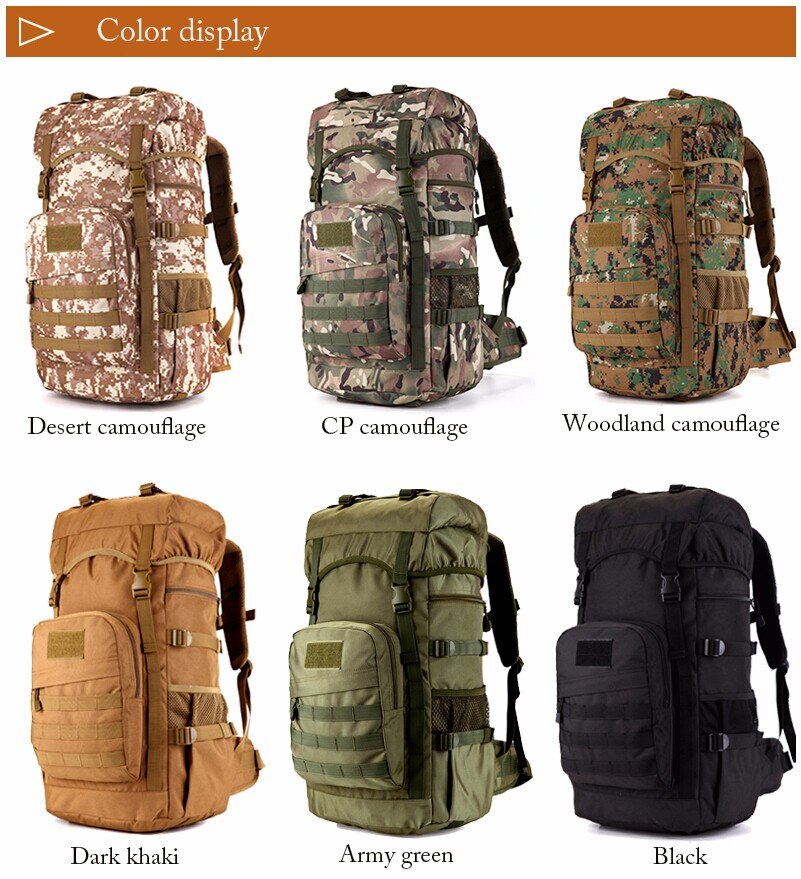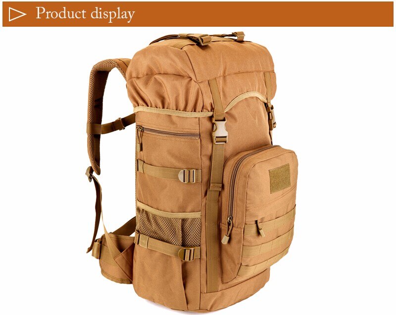 50L Molle/PALS Top Loaded Hiking Rucksack with Raincover Description: