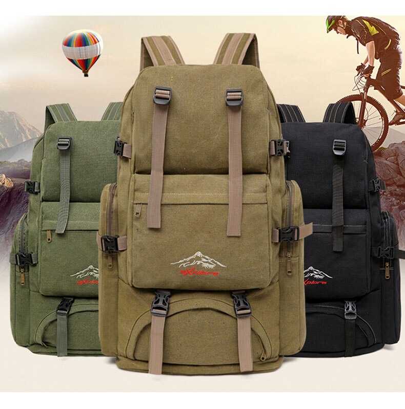 60L Large Canvas Camping Hiking Backpack Description: