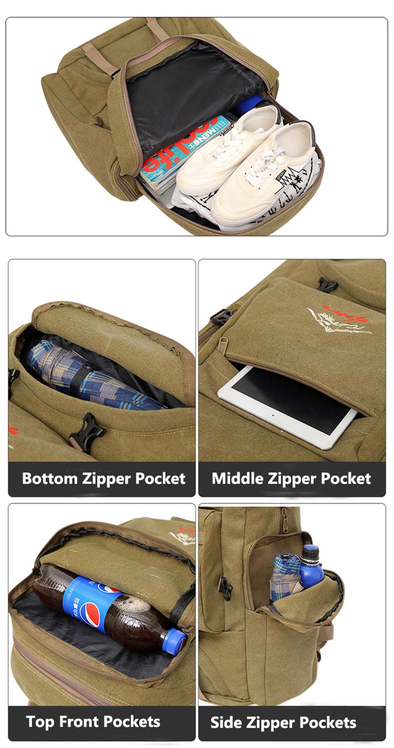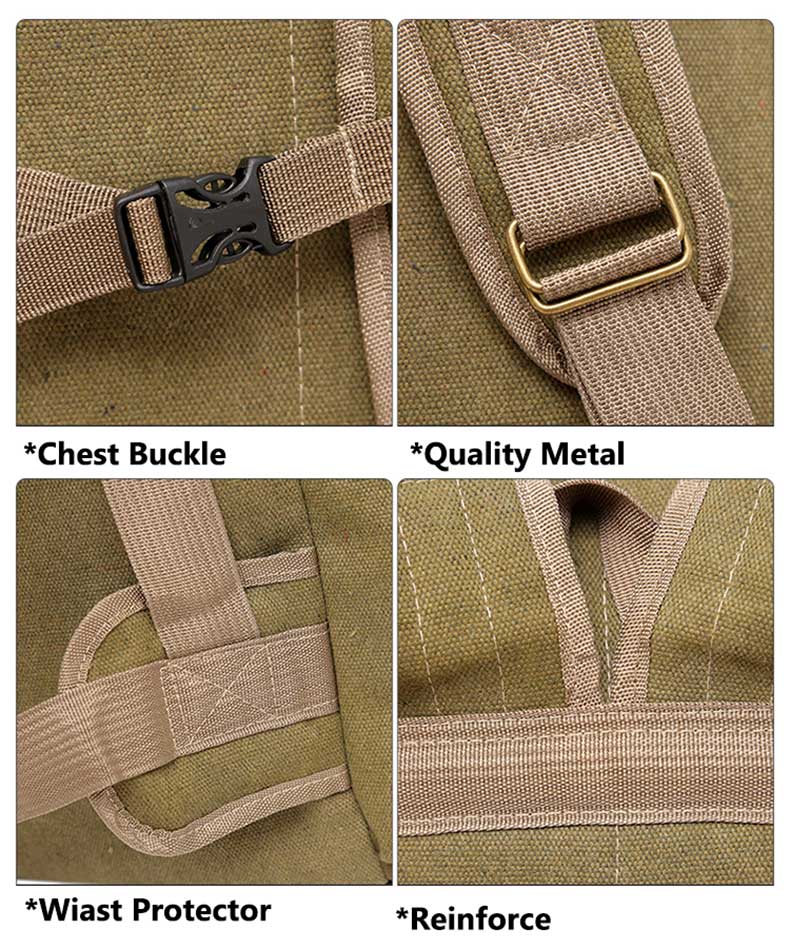 60L Large Canvas Camping Hiking Backpack Special Features: