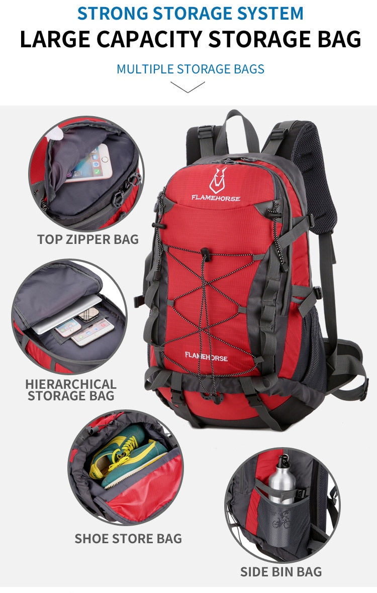 Flame Horse 40L High Capacity Hiking Trekking Backpack Description: