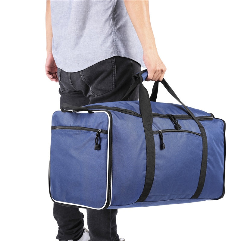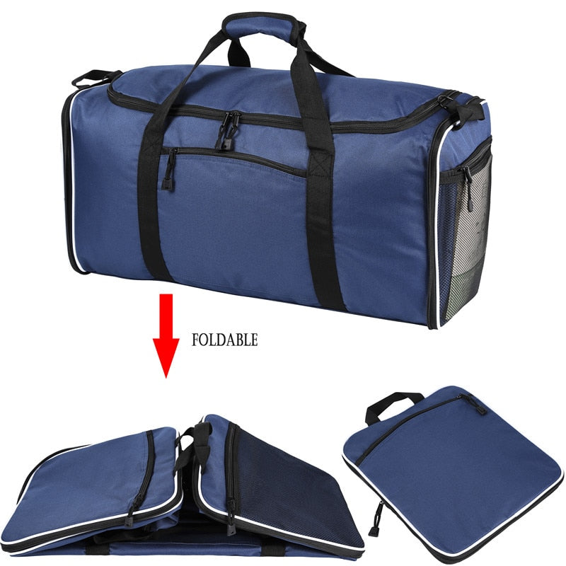 Unlike thick duffels, our 57L Compact Foldable Duffel Bag can be folded easily into itself and stowed in your regular luggage.