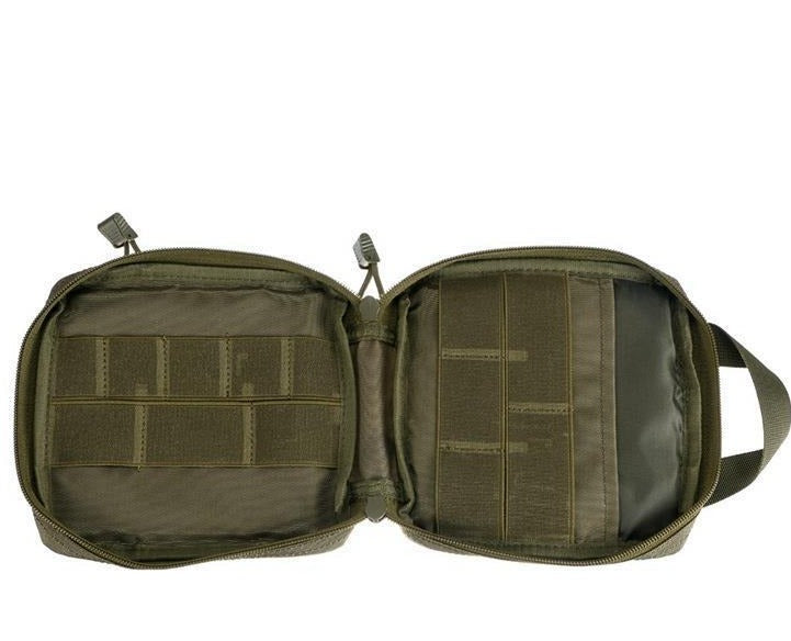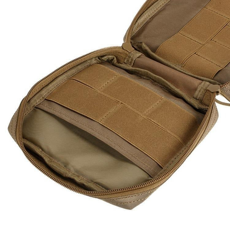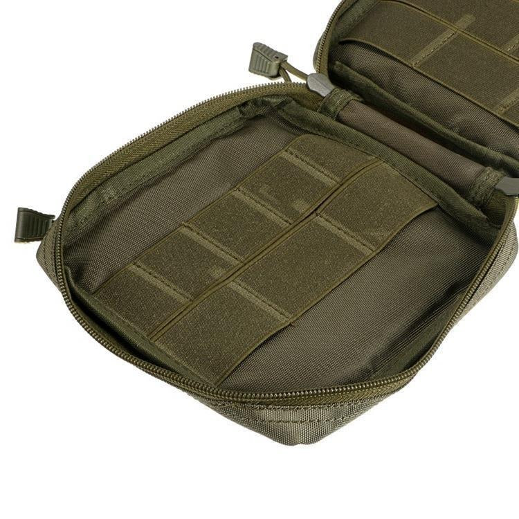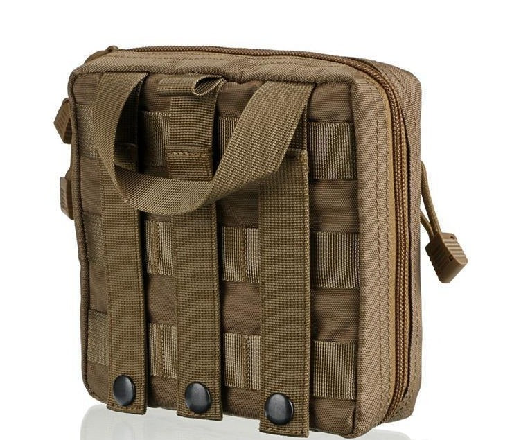 Ideal for anyone who needs rapid access to medical gear, this MOLLE Tactical Military Accessory Nylon Bag is designed for optimal organization and carrying convenience. Not only does this pouch provide ample space for shears, syringes, gauze and any other medical equipment, it also features internal dividers to keep them separated and easy to locate. The interior also boasts elastic loops for all manner of accessories. There is a double open, U-shaped zipper at the top of the pack for quick access, which closes securely to keep gear safe. There is also universal webbing along the front of the pack that makes it compatible as a modular attachment to any current setup. For quick, lightweight and convenient access to critical equipment, this is the pack for you.