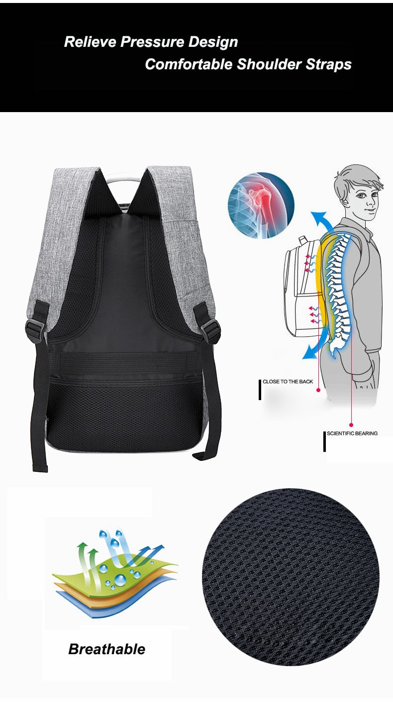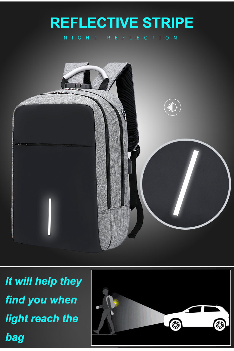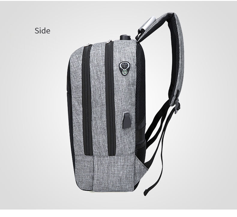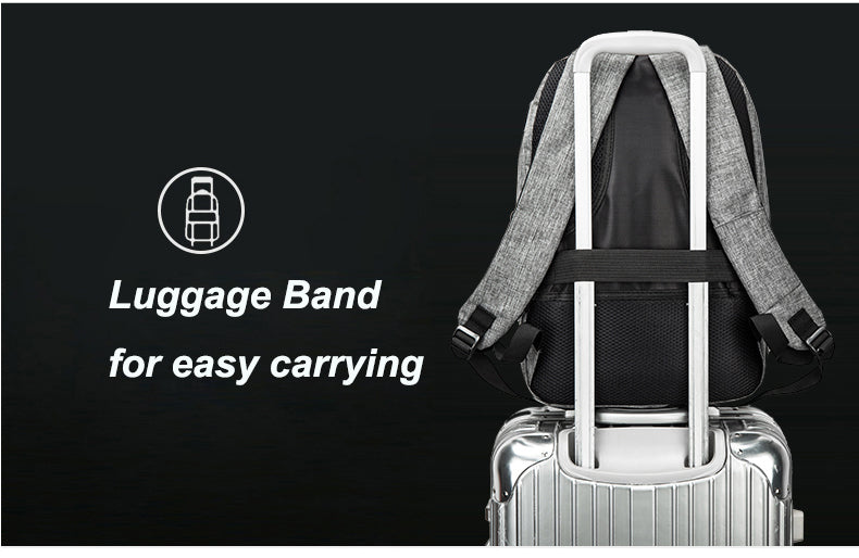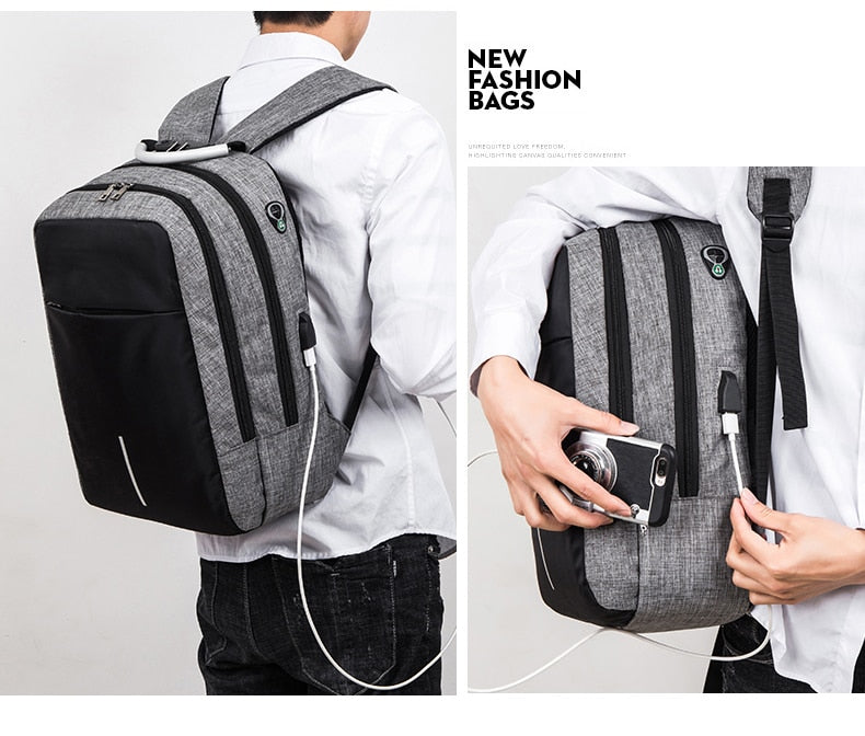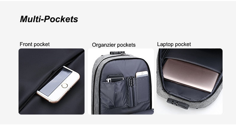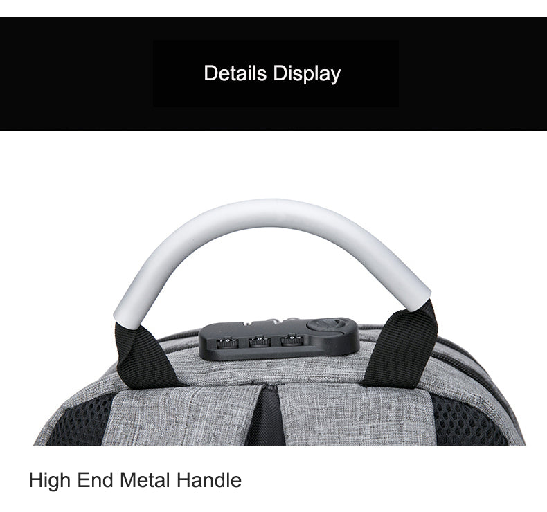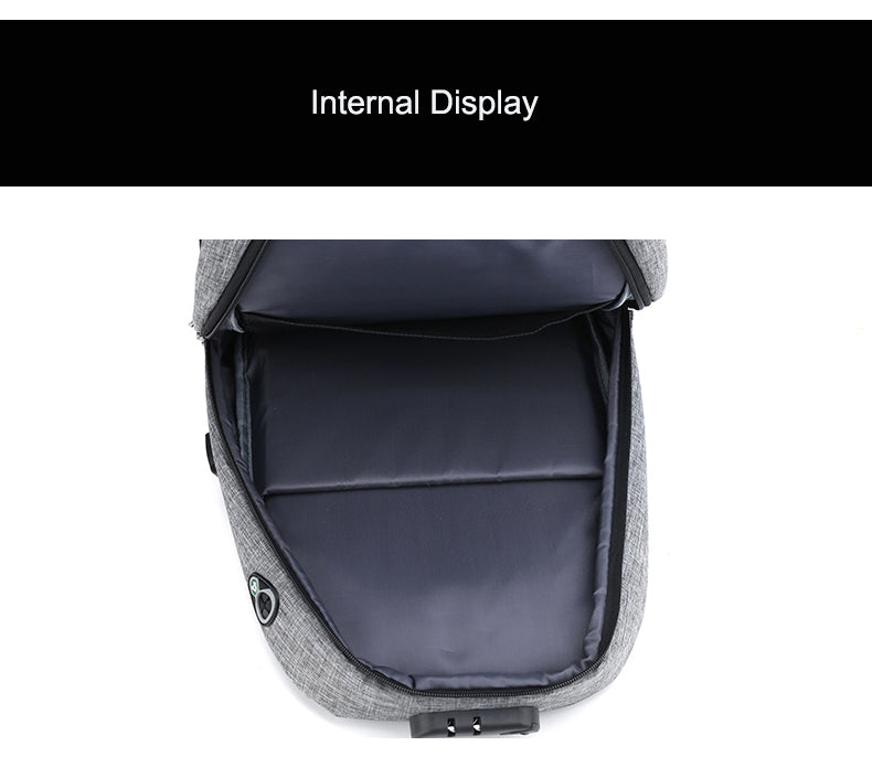 This Medium Oxford Anti-Theft 15" Laptop Backpack With USB Charging and TSA Lock keeps your valuables safe when you're on the go. Our backpack with lock and charger is made from durable, water-repellent fabric and features anti-theft construction with a cut-proof frame. This backpack with charger and lock is detailed with an integrated USB charging port, interior straps and pocket to secure all sorts of small items. Two large protective pockets for your laptop and tablet. Available in blue, black, purple and grey, this backpack includes a top grab handle and adjustable backpack strap that makes it comfortable to carry for all day use. A built in locking system locks all your valuables inside. This Anti-theft backpack with lock and charger is waterproof, comfortable and environmentally made. Additional features include a media port for easy access to your headphones.