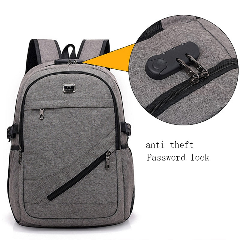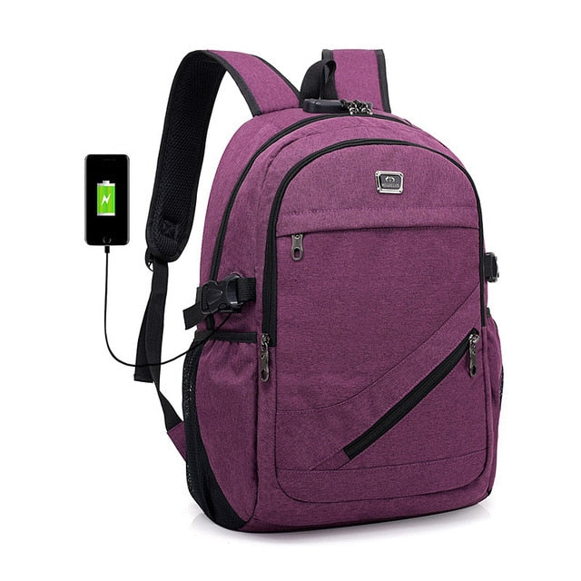 This Large Anti-Theft Oxford School 15" Laptop Backpack with USB Charging and TSA Lock keeps your valuables safe when you're on the go. Our large school backpack with lock and charger is made from durable, water-repellent fabric and features anti-theft construction with a cut-proof frame. Designed with all your needs in mind. This school backpack with charger and lock is detailed with an integrated USB charging port, interior straps and pocket to secure all sorts of small items, and protective pockets for your laptop and tablet. Available in three bold colors including black, grey and purple, this school backpack includes a top grab handle and adjustable backpack strap that makes it comfortable to carry for all day use. A built in locking system locks all your valuables inside. This Large Anti-Theft School Backpack with USB Charging and Lock is waterproof, comfortable and environmentally made. Handy zipper in the front for easy access. Ideal for a 15.6 inch laptop. The perfect companion for high school and college.