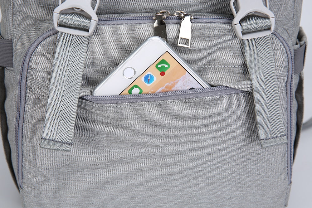 This baby bag uses the best quality and water-resistant nylon and polyester fabric material for long-lasting durability yet makes it easy to clean and quick drying.