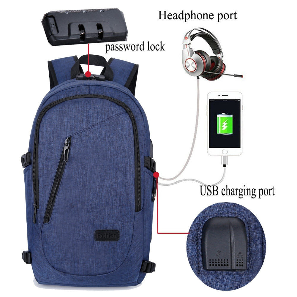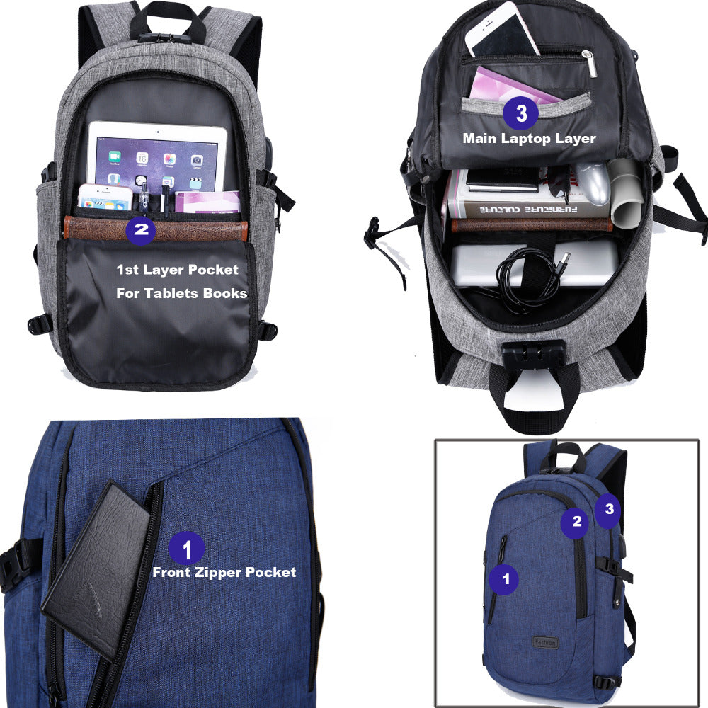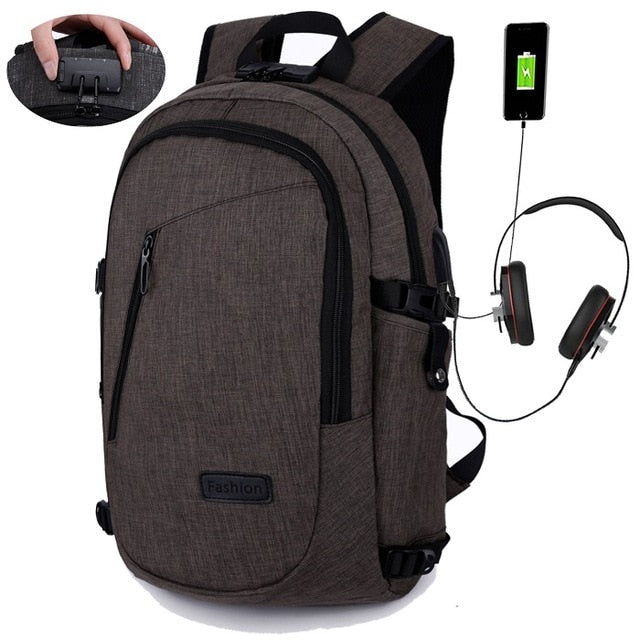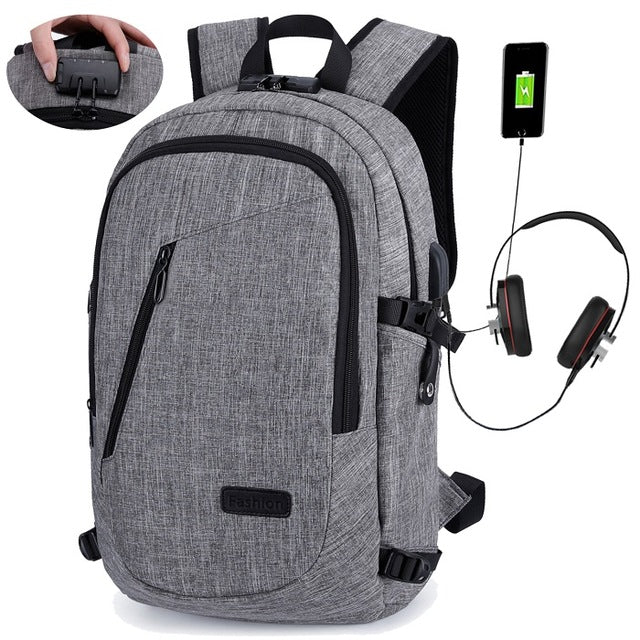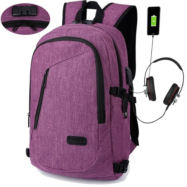 This eRucks Women's Medium Anti-Theft 15" Laptop Backpack with USB Charging and TSA Lock keeps your valuables safe when you're on the go. Our backpack with lock and charger is made from durable, water-repellent fabric and features anti-theft construction with a cut-proof frame. Designed with all your needs in mind. This eRucks Women's Medium Anti-Theft 15" Laptop Backpack with USB Charging and TSA Lock is detailed with an integrated USB charging port, headphone port, interior straps and pocket to secure all sorts of small items, and protective pockets for your laptop and tablet. Available in bold colors including black, grey, blue purple and coffee, this women's laptop backpack includes a top grab handle and adjustable backpack strap that makes it comfortable to carry for all day use. A built in locking system locks all your valuables inside. This eRucks Women's Medium Anti-Theft 15" Laptop Backpack with USB Charging and TSA Lock is waterproof, comfortable and environmentally made. Handy zipper in the front for easy access. Ideal for a 15.6 inch laptop. The perfect companion for high school and college.