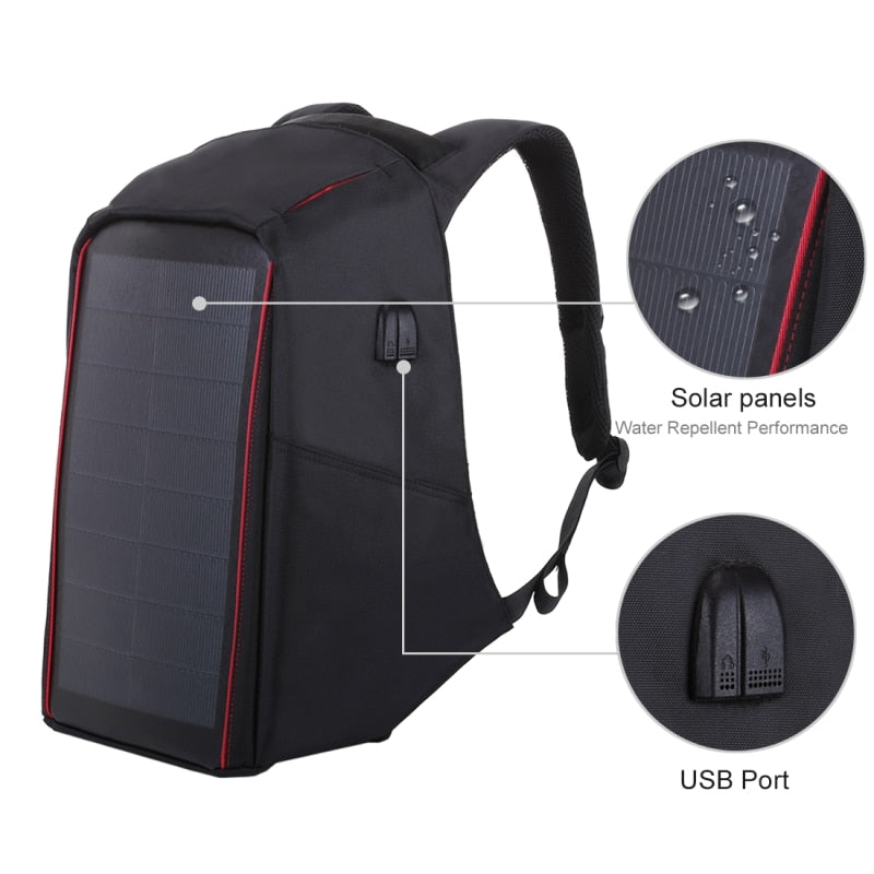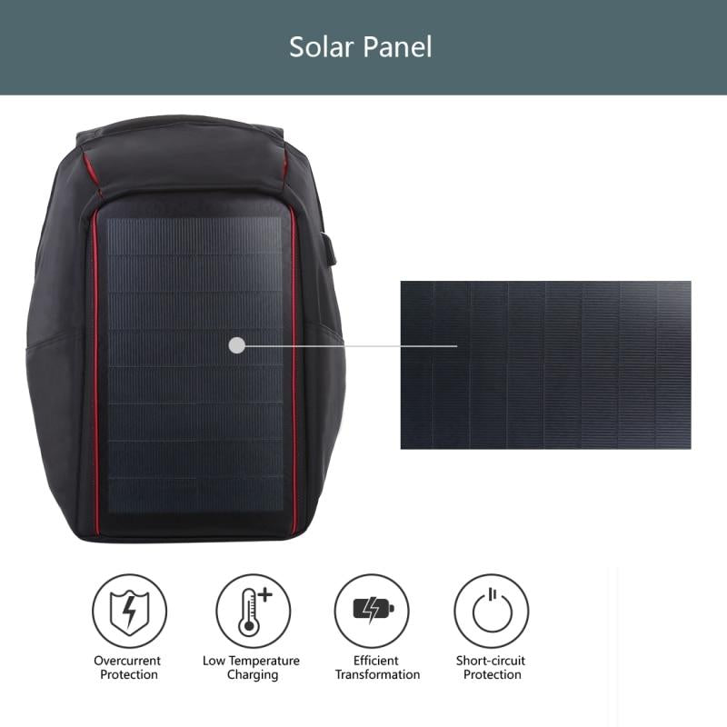 Men's 12W Solar Powered Anti-Theft Backpack with USB Charging Special Features:
