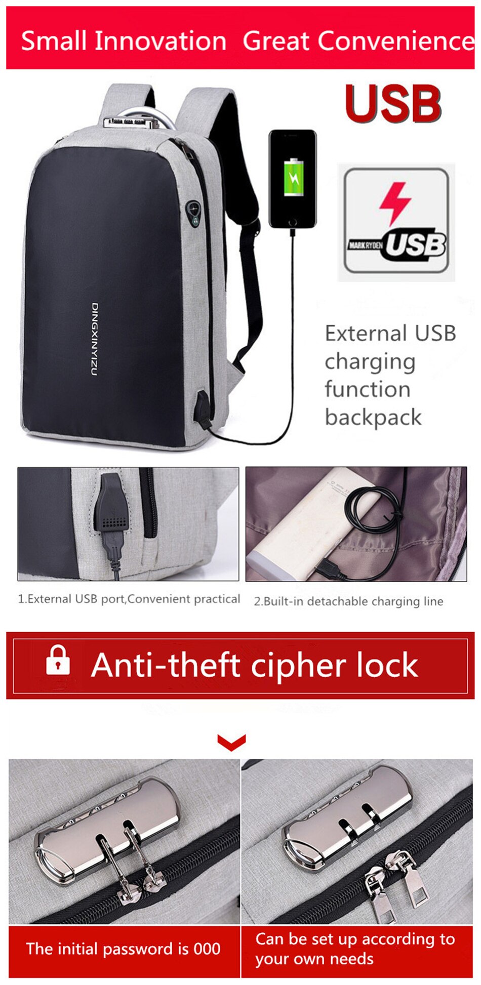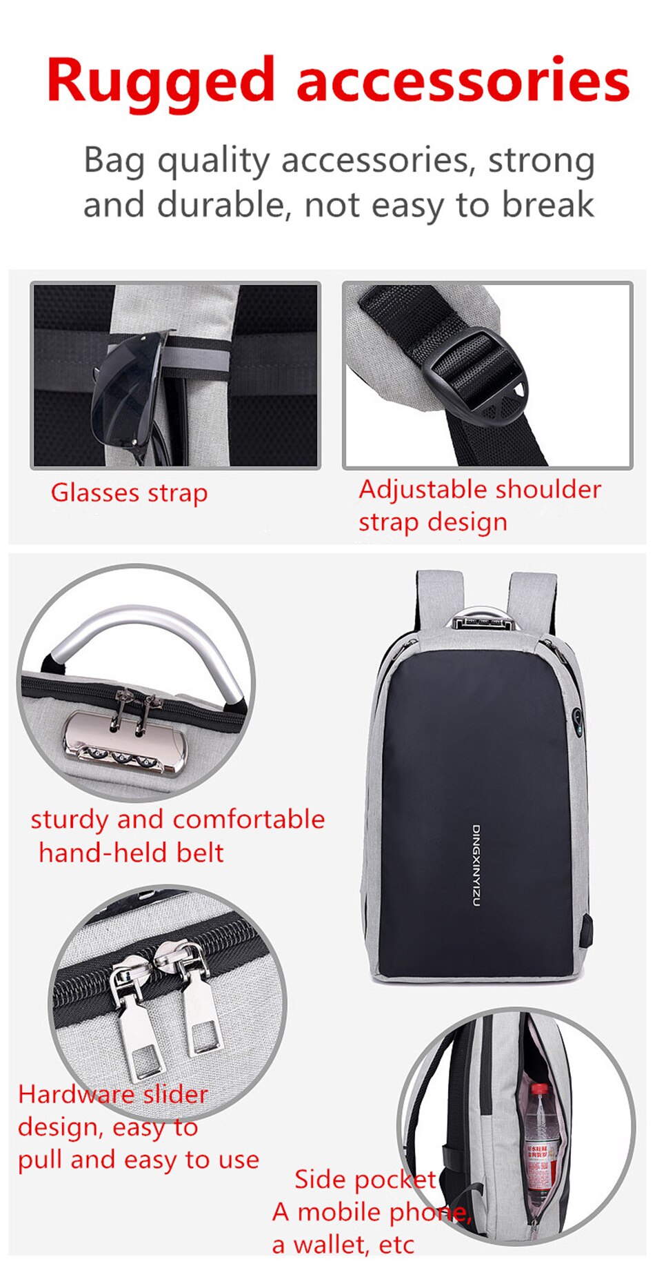 Men's Anti-Theft Backpack with USB Charging and Lock Description: