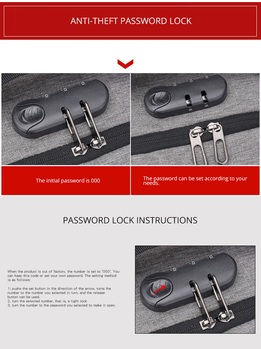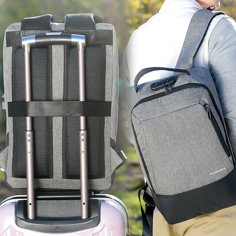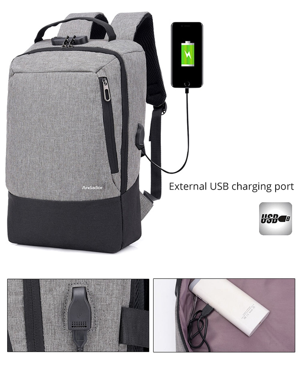 This Men's Canvas Medium Anti-Theft Business 15" Laptop Backpack with USB Charging and TSA Lock keeps your valuables safe when you're on the go. Our backpack with lock and charger is made from durable, water-repellent fabric and features anti-theft construction with a cut-proof frame. This Men's Canvas Medium Anti-Theft Business 15" Laptop Backpack with USB Charging and TSA Lock is detailed with an integrated USB charging port, interior straps and pocket to secure all sorts of small items, and protective pockets for your laptop and tablet. Available in black, blue-grey and grey, this backpack includes a top grab handle and adjustable backpack strap that makes it comfortable to carry for all day use. A built in locking system locks all your valuables inside. This Men's Canvas Medium Anti-Theft Business 15" Laptop Backpack with USB Charging and TSA Lock is waterproof, comfortable and environmentally made. Ideal for a 15.6 inch laptop.