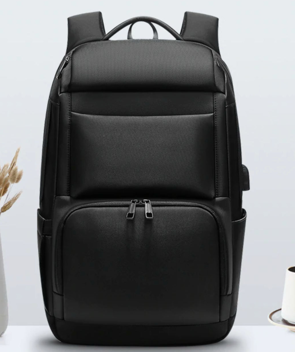 Our Men's Large Euro 17" Laptop Backpack with USB Charging can carry a 17" laptop and comes with a USB port, perfect for charging your phone or computer on the go. The backpack contains a strap that slides over a luggage handle and sits atop a luggage for easier transport. The back bottom contains a zipper pouch to keep your valuable items safe and sound. Designed with a sleek and european look. Stand out in the crowd and order your Men's Large Euro 17" Laptop Backpack with USB Charging today!