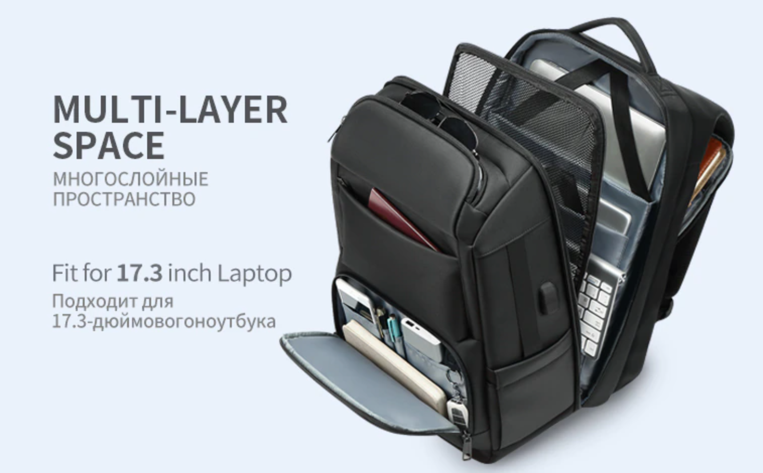 Men's Large Euro 17" Laptop Backpack with USB Charging Description: