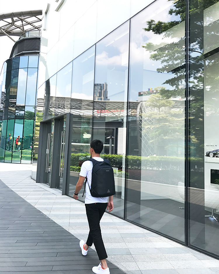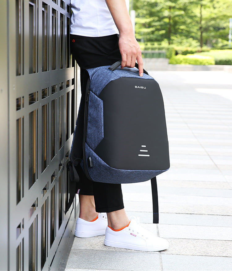 A comfortable and classic backpack says a lot about you where on you're on the go. Communicate the right message in our Men's Medium Anti-Theft Backpack with USB Charging. An ideal companion for school and quick day trips. It's water resistant patchwork pattern material will protect your belongings from sudden downpours or accidents. Side pockets and hidden zippers are the ideal safety features to keep phones, keys and wallets safe. This Men's Medium Anti-Theft Backpack with USB Charging is supremely sturdy and made with quality craftsmanship, this backpack is everything you need to get you through your day. A hard outer shell protects your valuables. Reflective strip for added visibility. Available in four classic colors. Beautifully understated and perfectly subtle, this Men's Medium Anti-Theft Backpack with USB Charging is everything you need to keep moving.