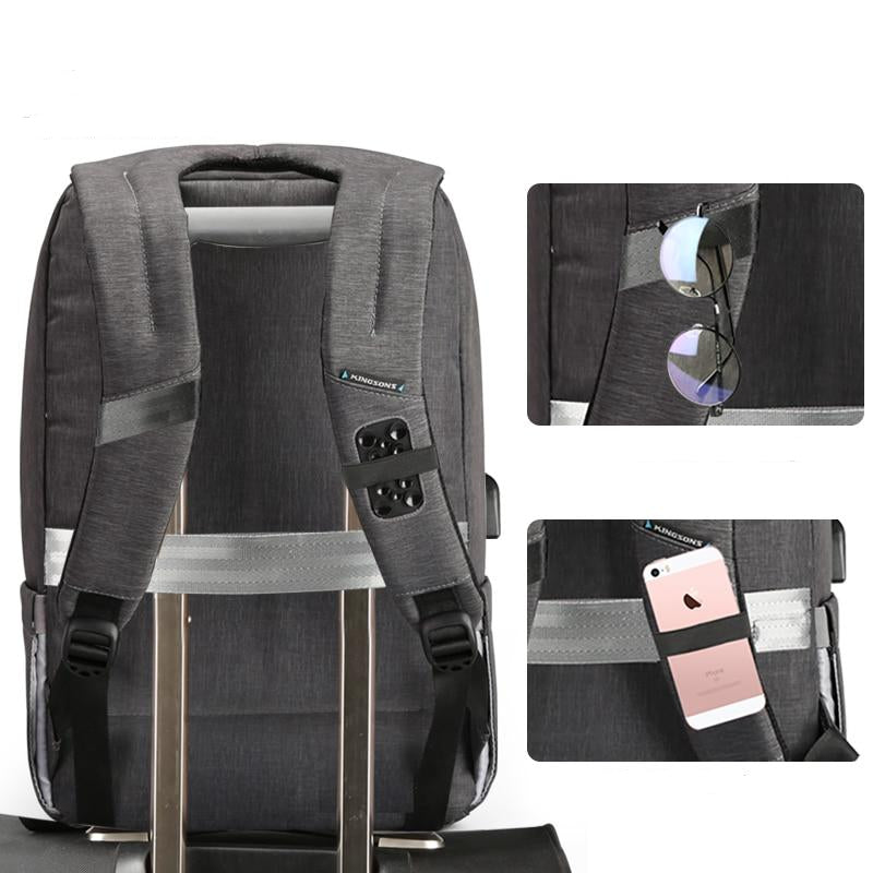 Our Medium Shockproof 15" Laptop Backpack with USB Charging is ideal for school, business and quick day trips. The dual shoulder straps provide comfort when you're on the go. Multiple pockets are the ideal safety features to keep phones, keys, electronics and wallets safe. Supremely sturdy and made with quality craftsmanship, this backpack is everything you need to get you through your day. Additional features include convenient USB port for easy and quick charging. Shockproof compartment that keeps your electronics in one piece. Fits a 15.6 laptop comfortably. Additional strap to secure laptop in bag.