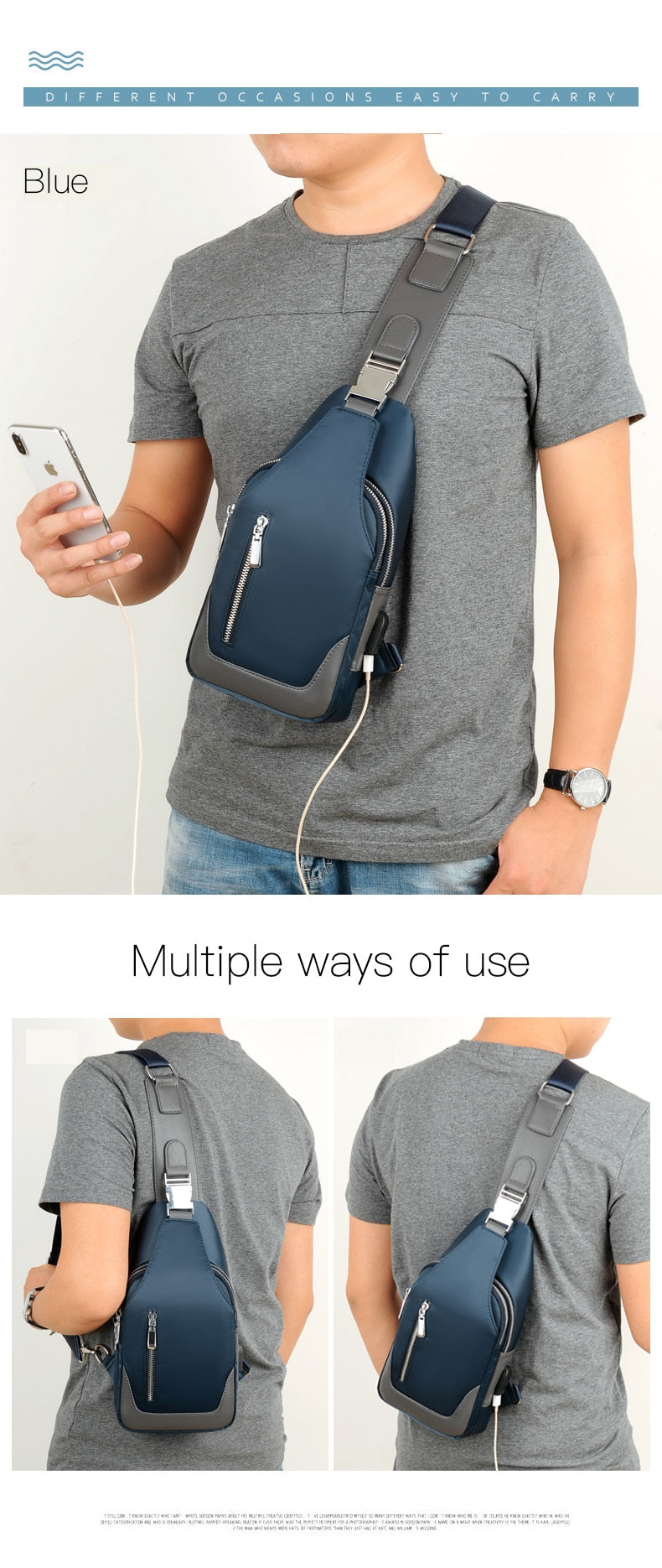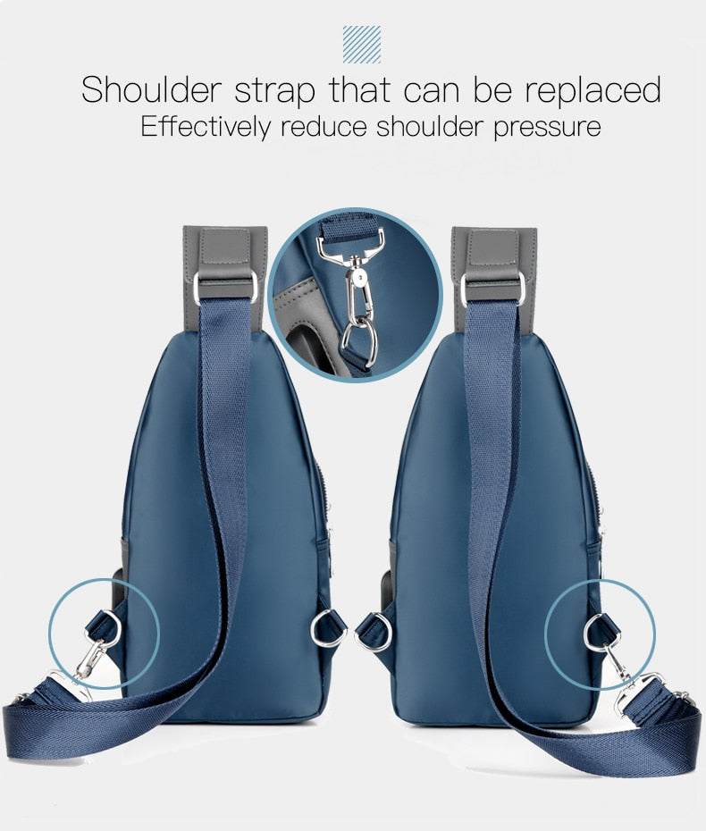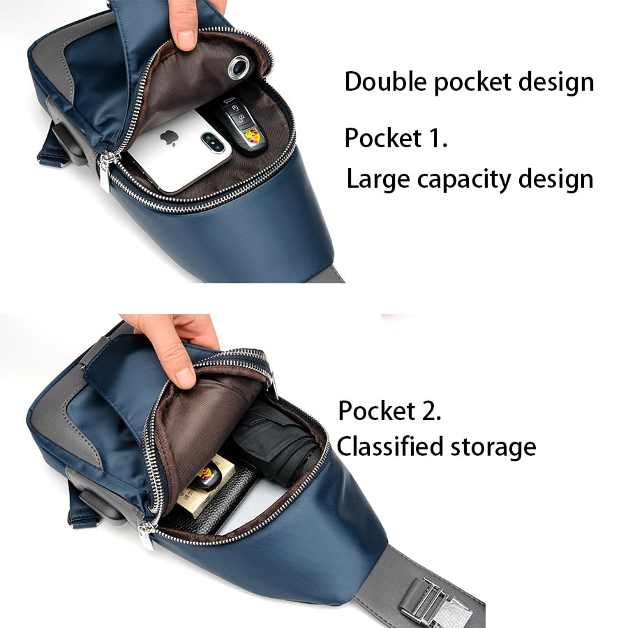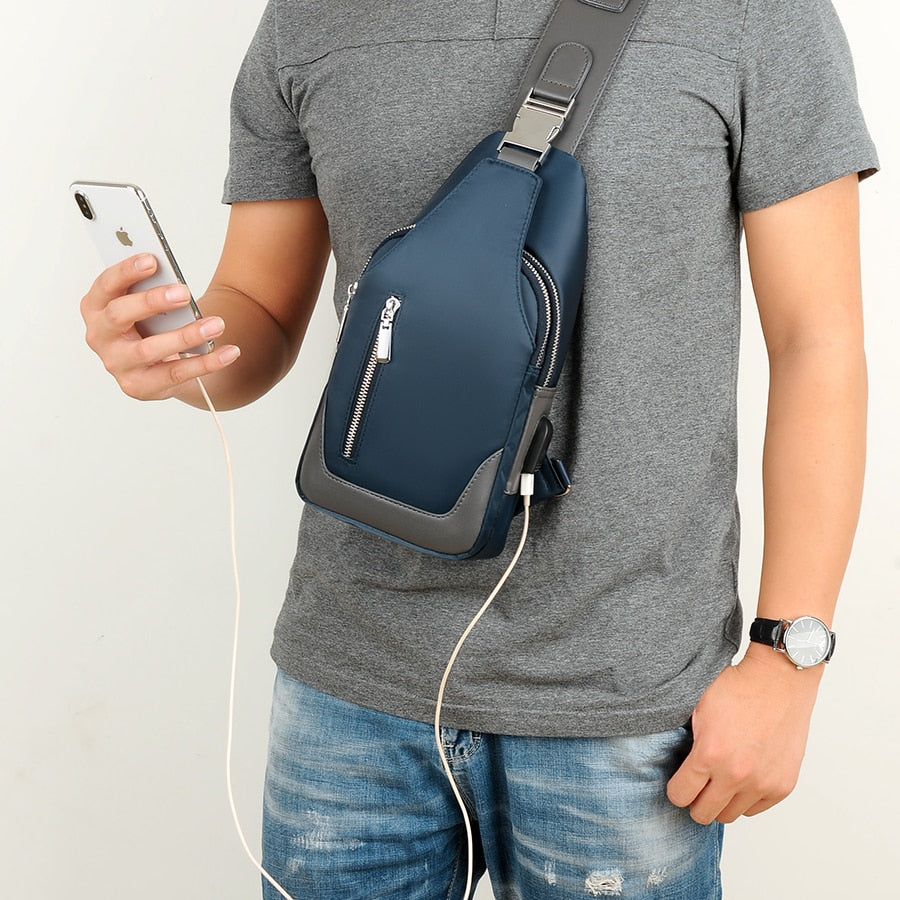 Men's Small Crossbody Bag with USB Charging Description: