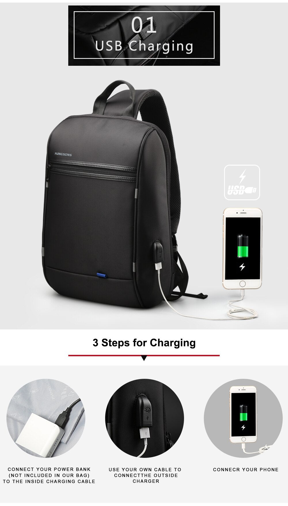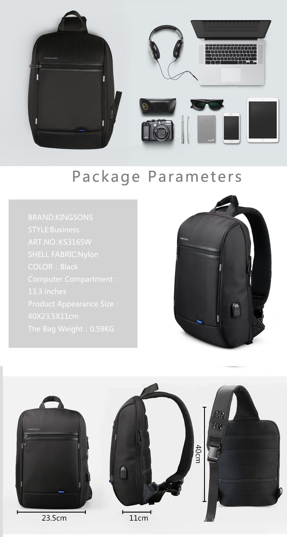 Men's Small Single Shoulder Anti-Theft 13" Laptop Backpack with USB Charging Description: